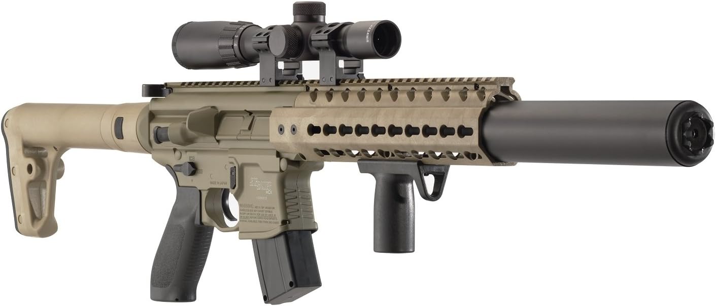 Rifle de aire comprimido avanzado SlG Sauer MCX .177 Cal con CO2 de 90 gramos (paquete de 2) y paquete de 500 balines de plomo (FDE, alcance 1-4x24). Desde simulacros tácticos hasta prácticas de tiro al blanco, el rifle de aire comprimido SLG MCX impulsado por CO2 ofrece 30 disparos, rendimiento y manejo simulados del SlG MCX para un entrenamiento y una práctica más realistas y económicos, en cualquier momento y en cualquier lugar. Con cámara en balines .177, las características incluyen un cañón de acero estriado de 18", guardamanos sintético, riel picatinny, agarre frontal táctico, miras abatibles delanteras y traseras y muchas más.