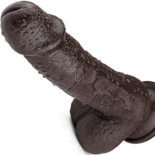 Realistic Dildo, 10 Inch Dual-Density Silicone Huge Penis with Strong Suction Cup for Hands-Free Play Flexible Dong for Vaginal G-spot and Anal Masturbation(Brown)
