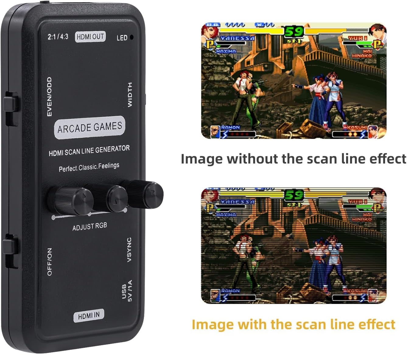 El video del juego de arcade produce el efecto de línea de escaneo,clásico,nostalgia,Recuerdo perfecto de CRT.Efecto de visualización de imagen de video de 15KHZ,Revivir la imagen clásica del juego de arcade,Siente de nuevo la maravillosa imagen de la línea de escaneo.