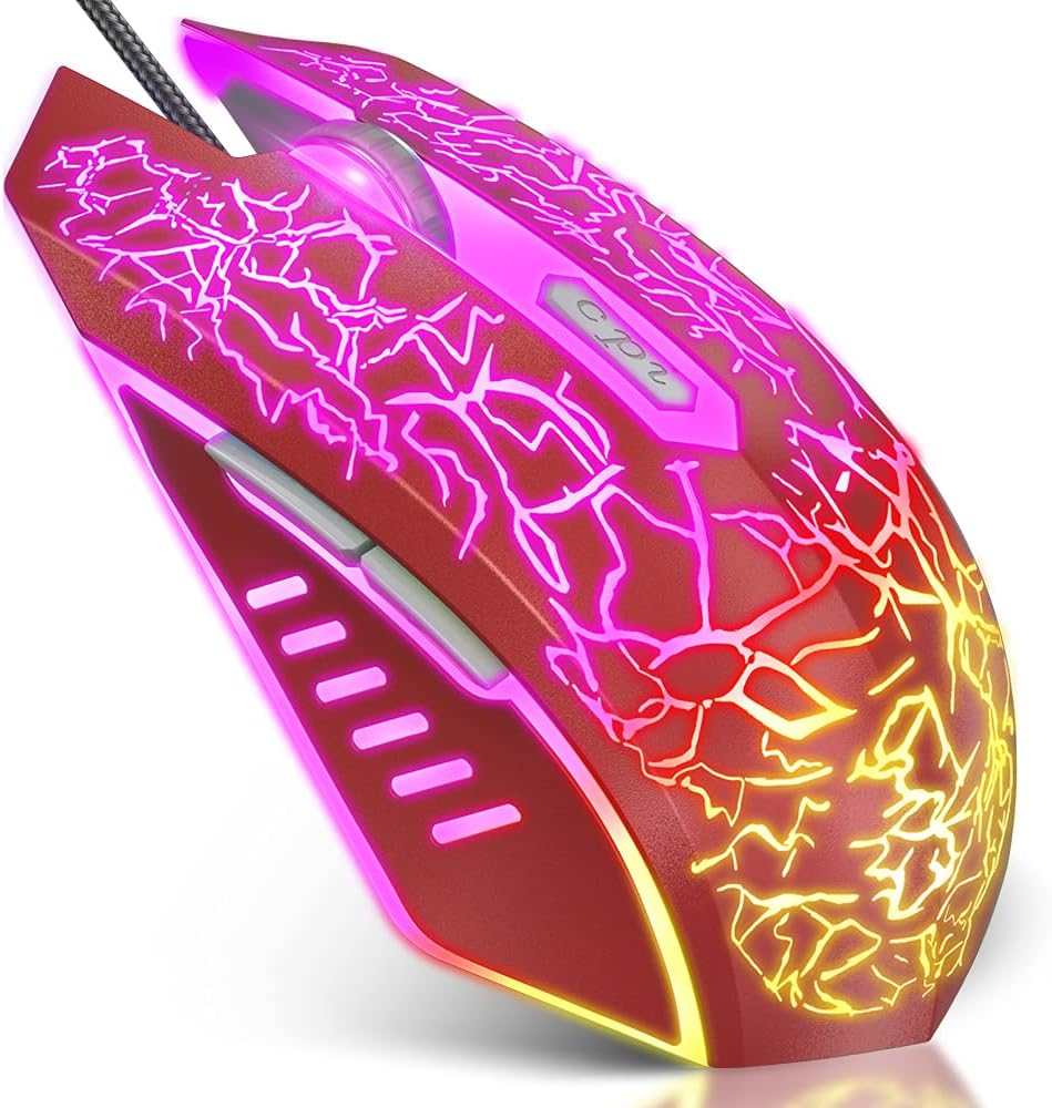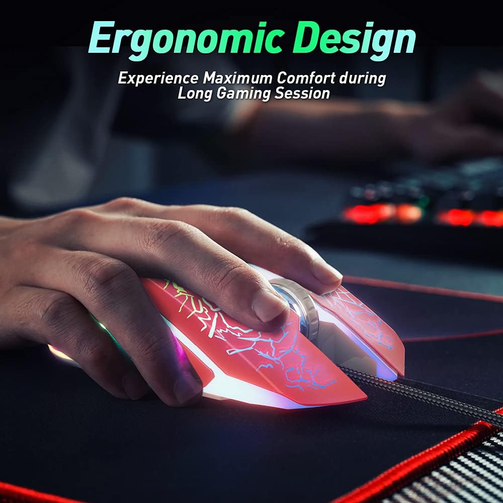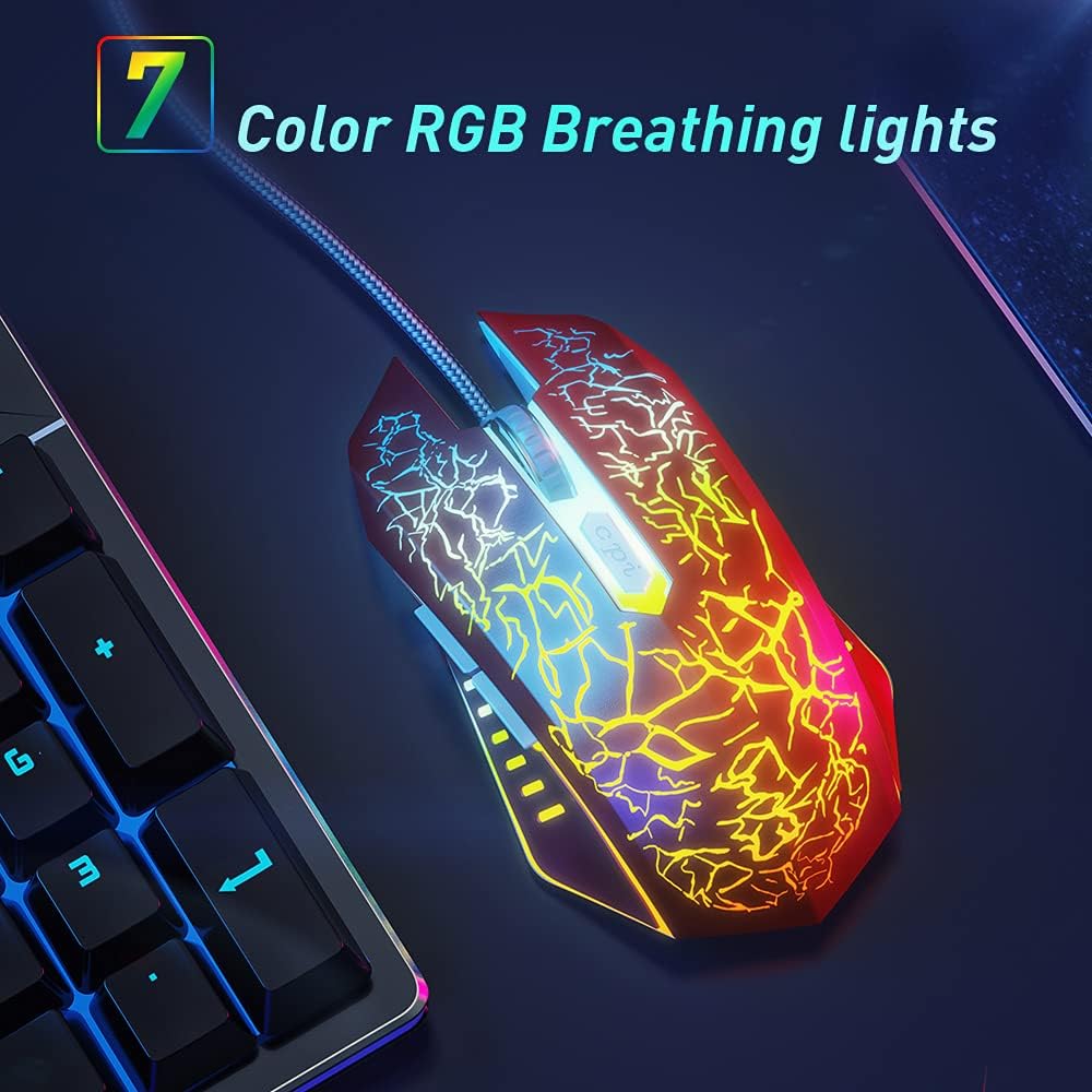【RGB 7-Color Breathing Light】 Unique cracking design combining with 7 colors glaring LED light,multiple colors are glowing at once, highlights the atmosphere of gaming. Press Forward / Back Button + DPI to turn off the light.