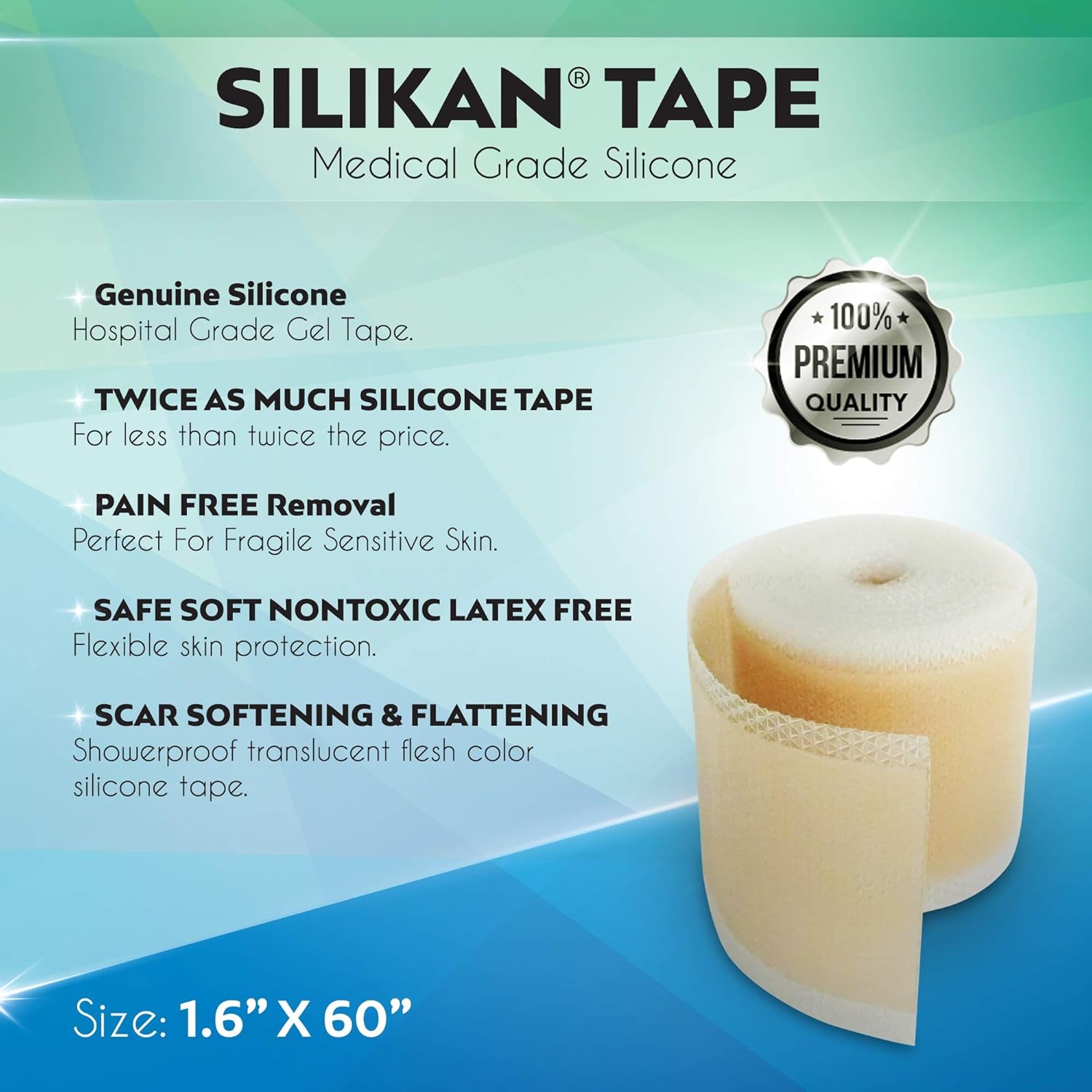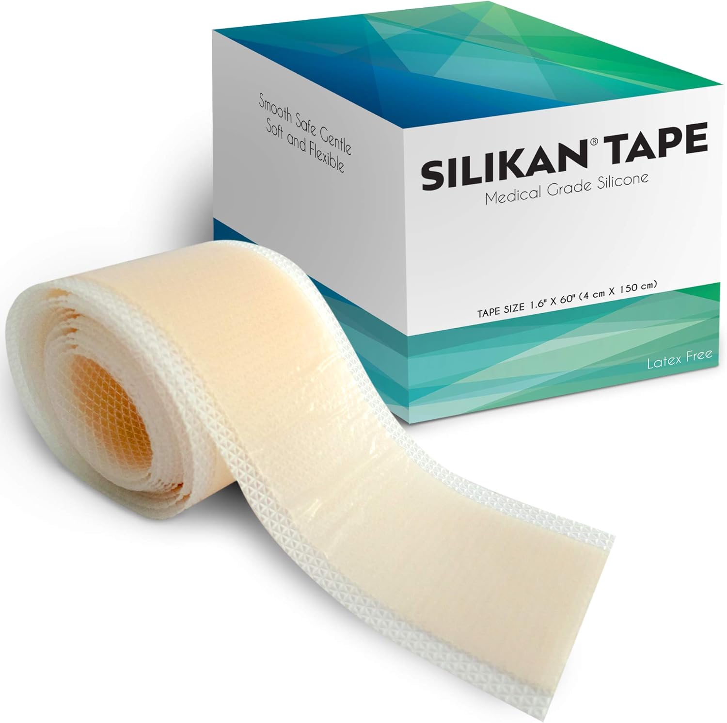 SILIKAN Silicone Gel Scar Tape – 5-Foot Roll of Silicone Gel Sheeting – Safe Scar Treatment Tape - Supports Healing of C Section, Ostomy, Breast Lift and Reduction, Burns, Keloids