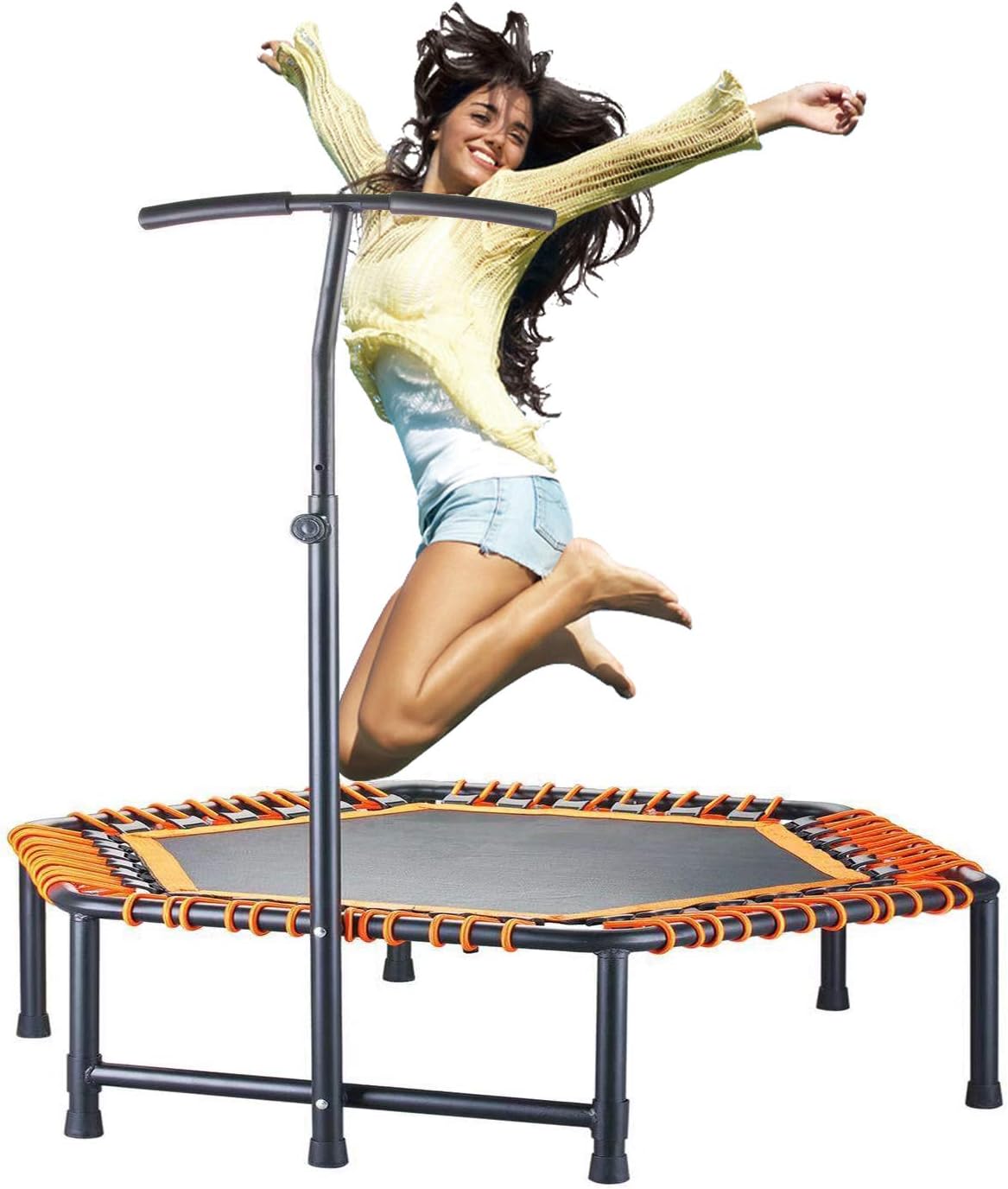 48" Jump Sport. trampline for Adults and Kids.for Adults Heavy Weight Trampoline with Adjustable Handle bar,Safe Elastic Band – Indoor Fitness/Home Workout Cardio Sport.-Orange