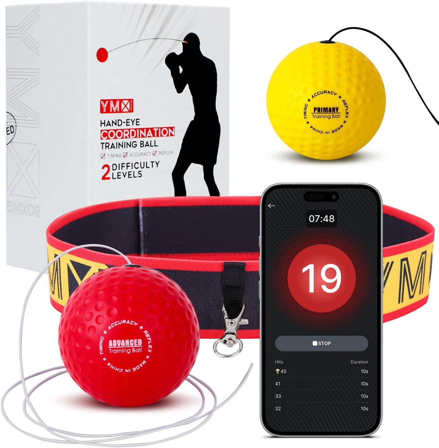 YMX BOXING® Training Reflex Ball with Counter App - Adjustable Elastic Headband, Light Weight Soft Foam Balls - Improve Coordination, Reaction Speed, Focus, Accuracy - Cardio Sports Exercise Equipment