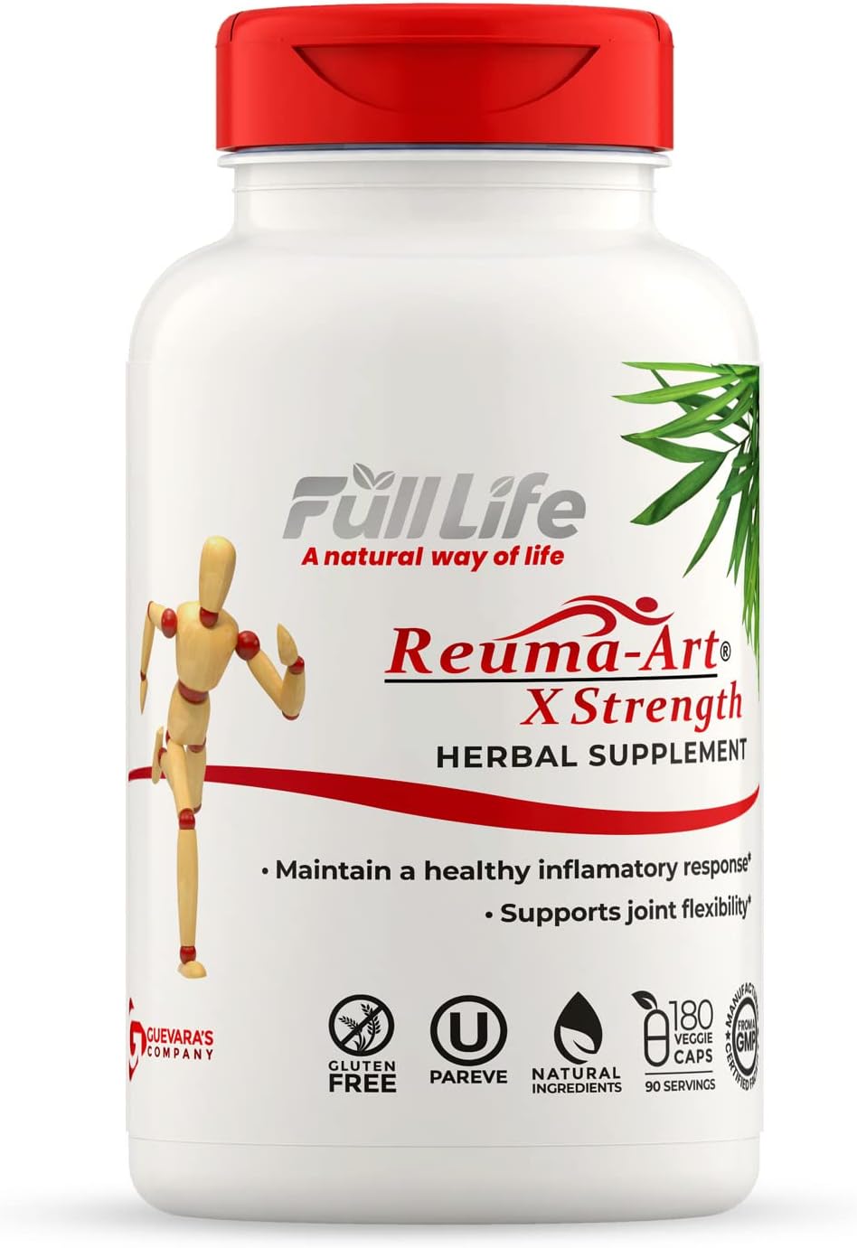 Full Life Reuma-Art X Strength – 400 mg Herbal Supplements - Supports Joint Flexibility – 180 Veggie Capsules