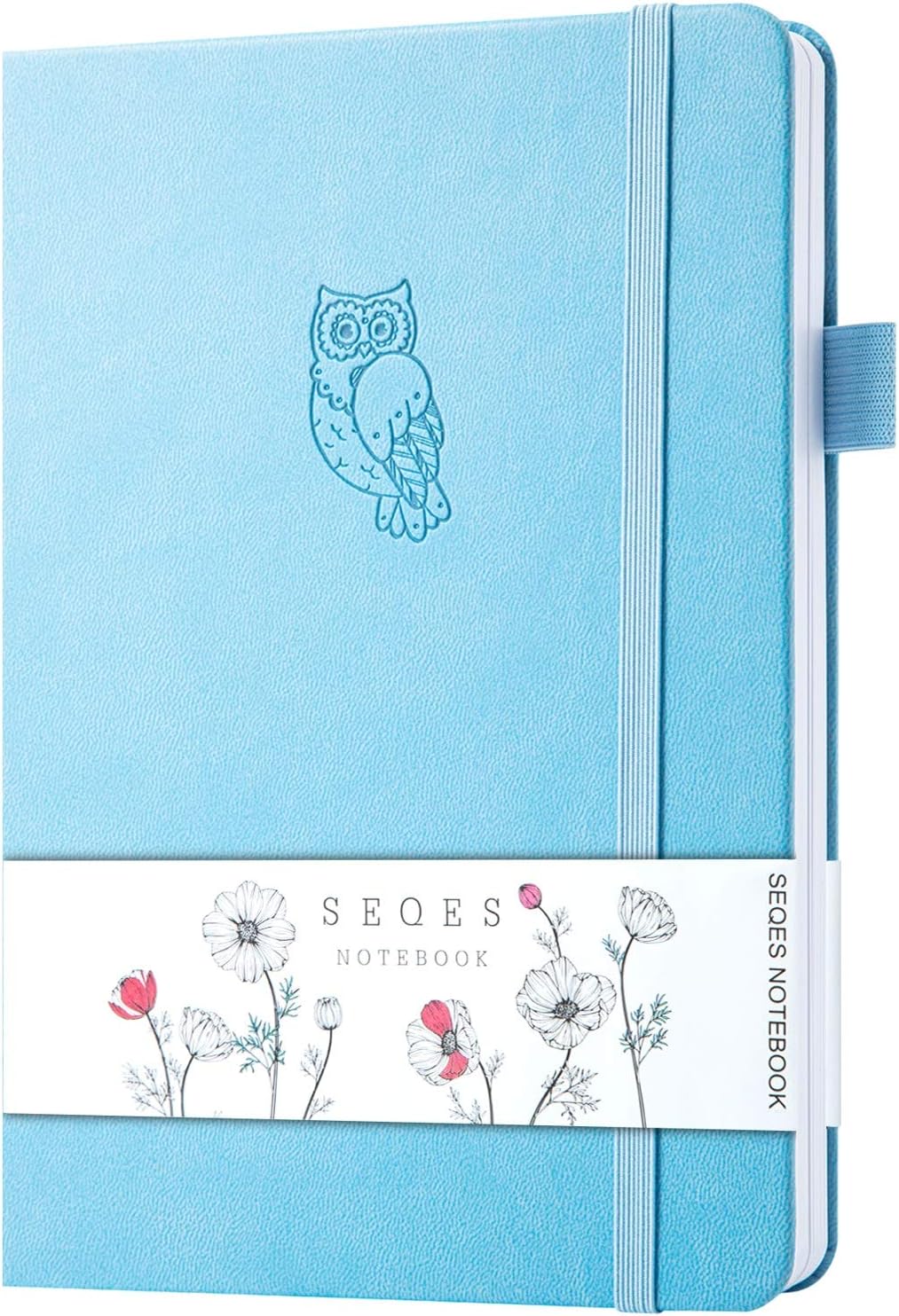 Dotted Notebook with Pen, A5 Thick Paper Dot Grid Notebook, Writing Sketching Journal with Pen Loop, Faux Leather Hardcover with Inner Pocket, 160gsm, 5.7" x 8.2",Embossed Owl Cover