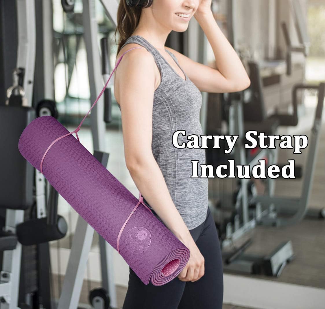 Lightweight, Free Carry strap: Weighing in at 2 lbs, our exercise mat with free carrying strap is portable for travel. Most workout mat are either too thin or too thick. IUGA 1/4" workout mat guaranteed to provide the optimal level of cushion and protection for your joints and knees while still allowing you to grip the floor for balance poses