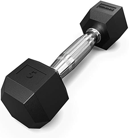 Synergee 5 LB Rubber Encased Hex Dumbbells with Chrome Handle. Sold Individually All Purpose Weights for Strength & Conditioning Training.