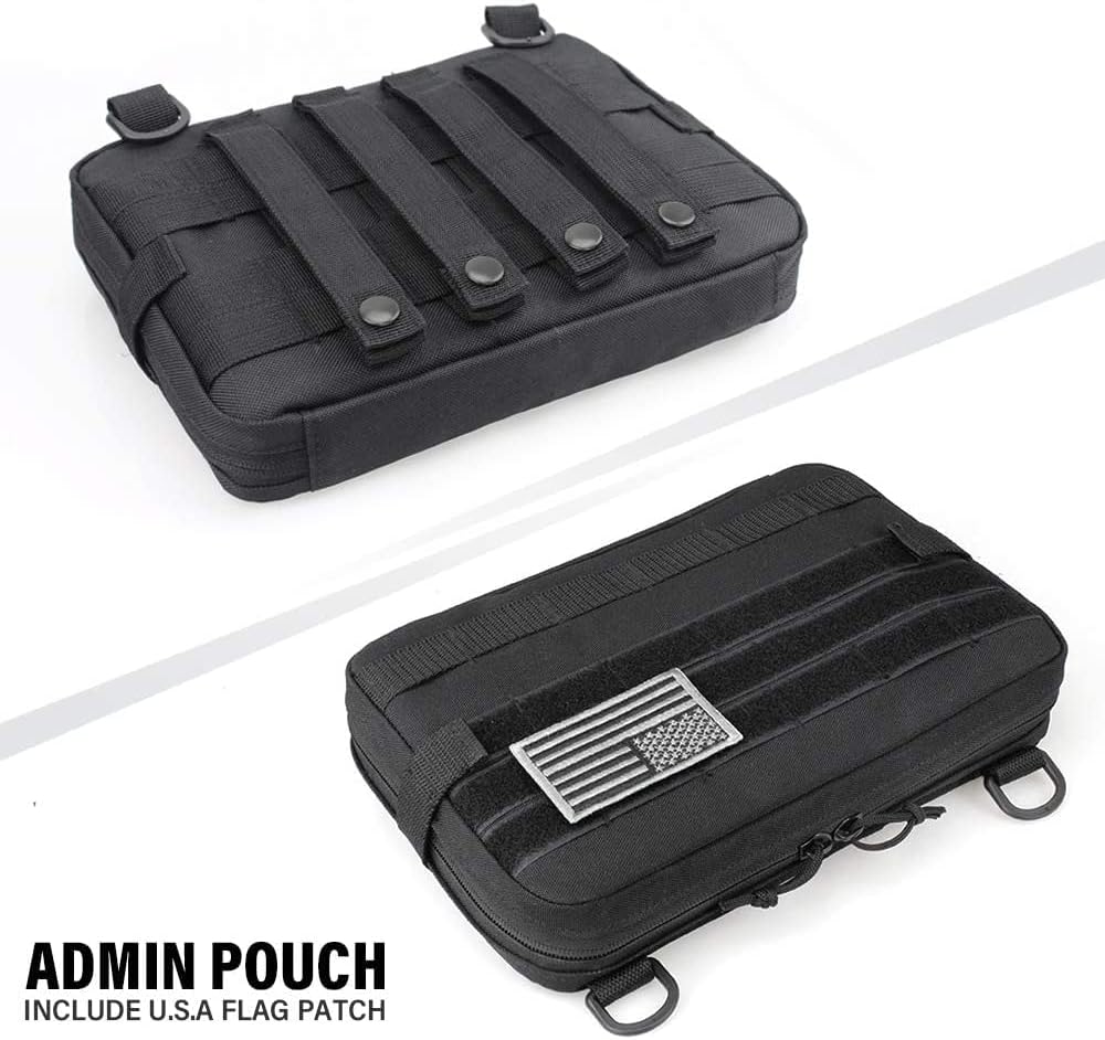 BUILT FOR TOUGH OUTDOOR OCCASIONS: Molle Admin Pouch is made of military-grade 1000D polyester material for better tear & water resistance. Strong copper snaps and durable two-way metal zippers support the pouch to sustain in the harshest environment. We offer 30 day money-back of quality guarantee.