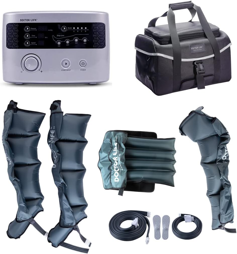 DOCTOR LIFE LX9max Full Body Recovery Compression System : Compression Pump, Recovery Boots, Arm Sleeve, Waist Sleeve, Carry Bag. (Boots Size : XL)