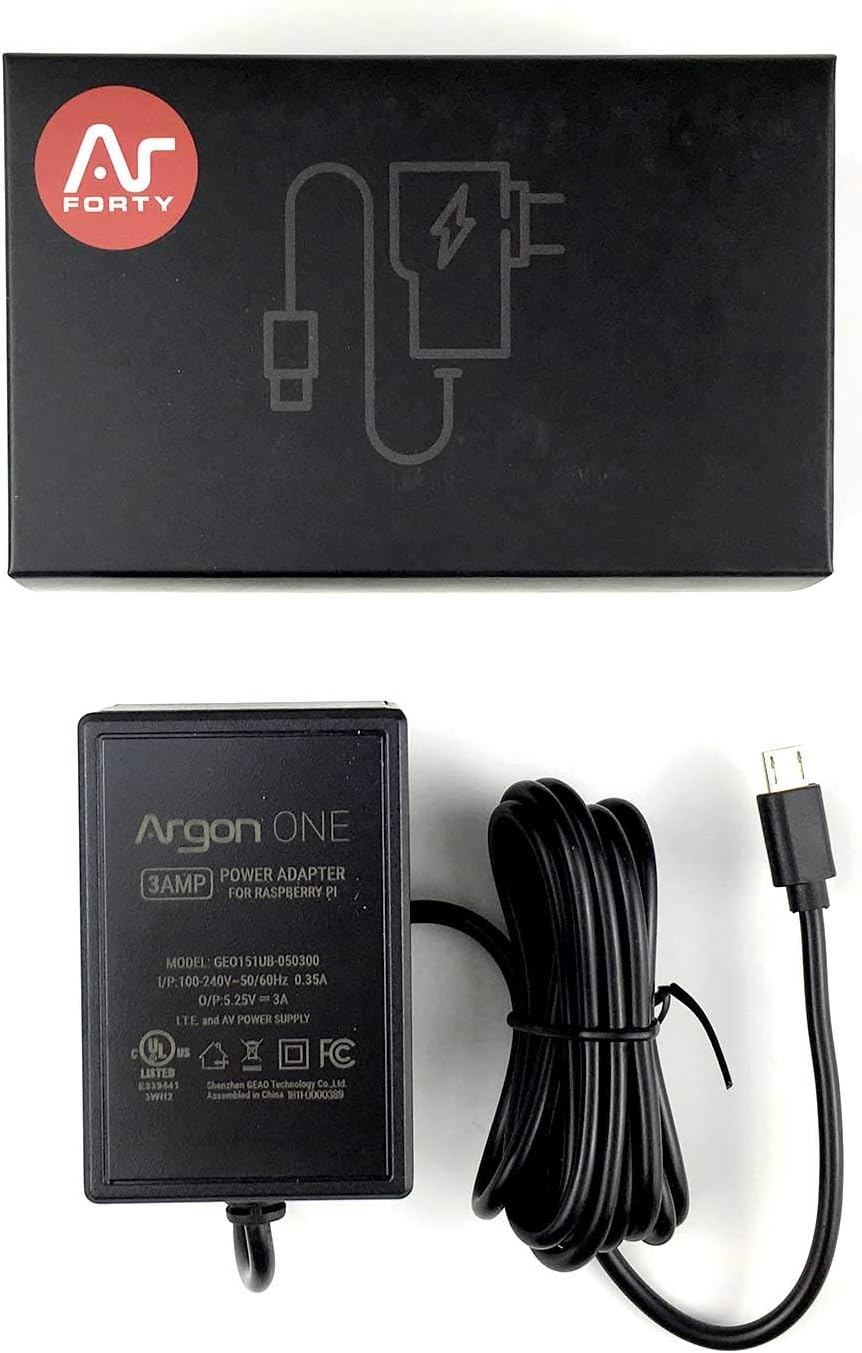 Argon One Raspberry Pi 3 B+/B Case with Cooling Fan | Includes 5.25V/3A Power Supply | Aluminum Heatsink | Power Button | Supports Retro Gaming, Movies, and Music