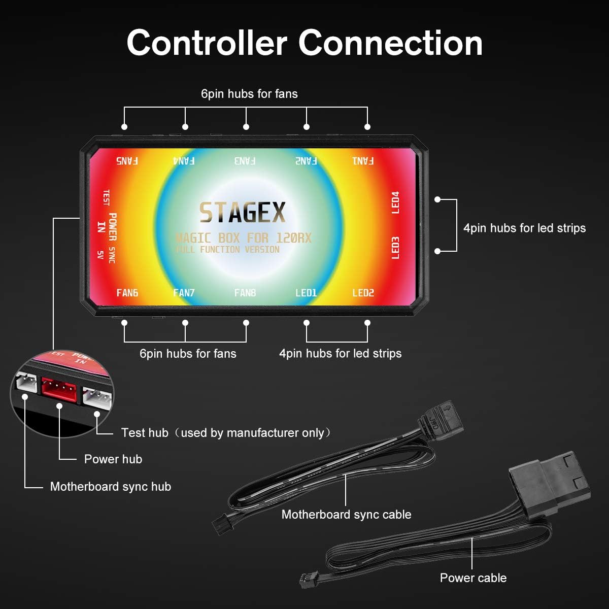 STAGEX 3-Pack 120mm RGB Case Fans, Multiple Light Modes Computer Addressable RGB Led Fans System, Motherboard Sync Ready