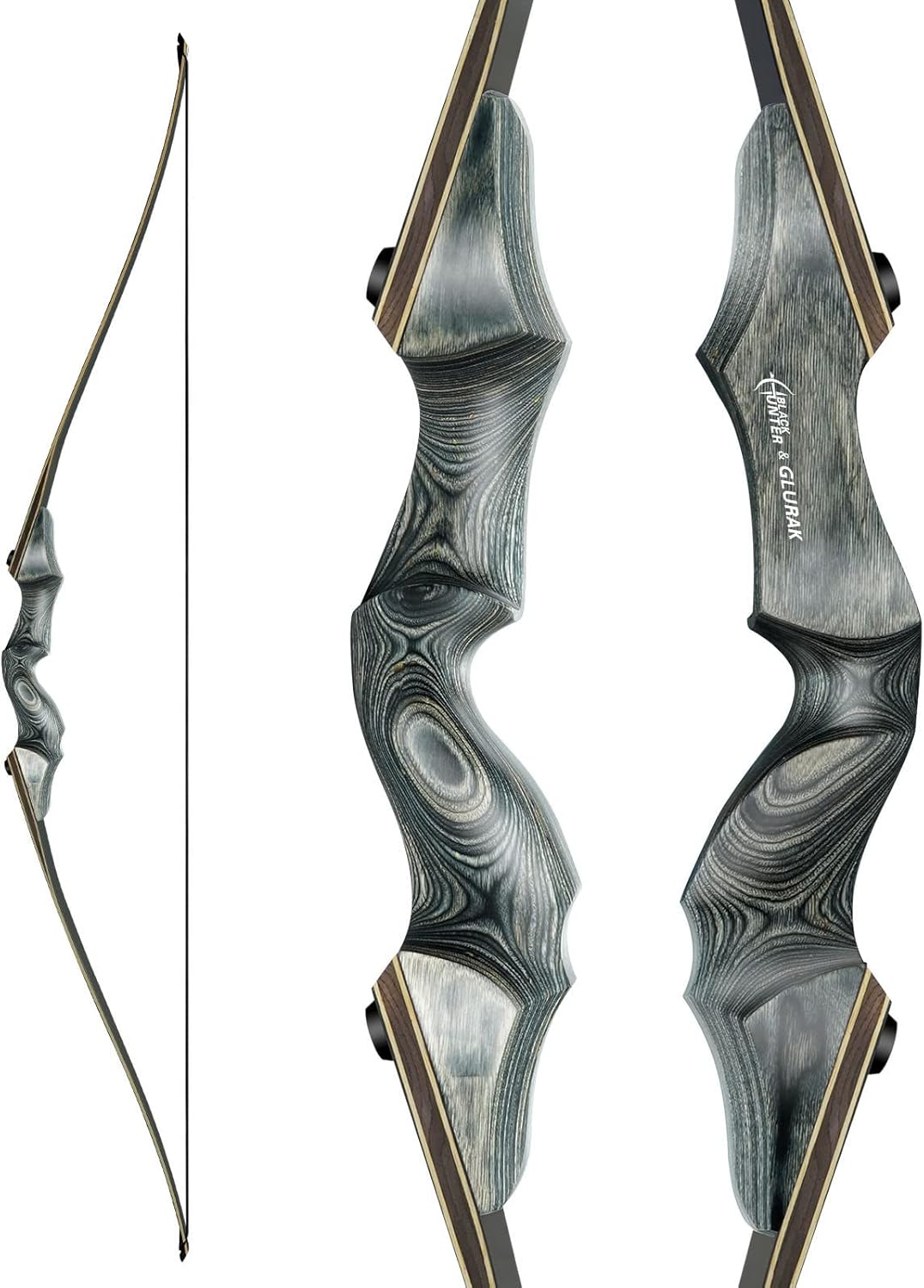 Black Hunter Takedown Longbow, GLURAK 60" Right Handed & Left Handed Wooden Archery Bow Hunting Bow for Beginner Training Practice, 25-60lb