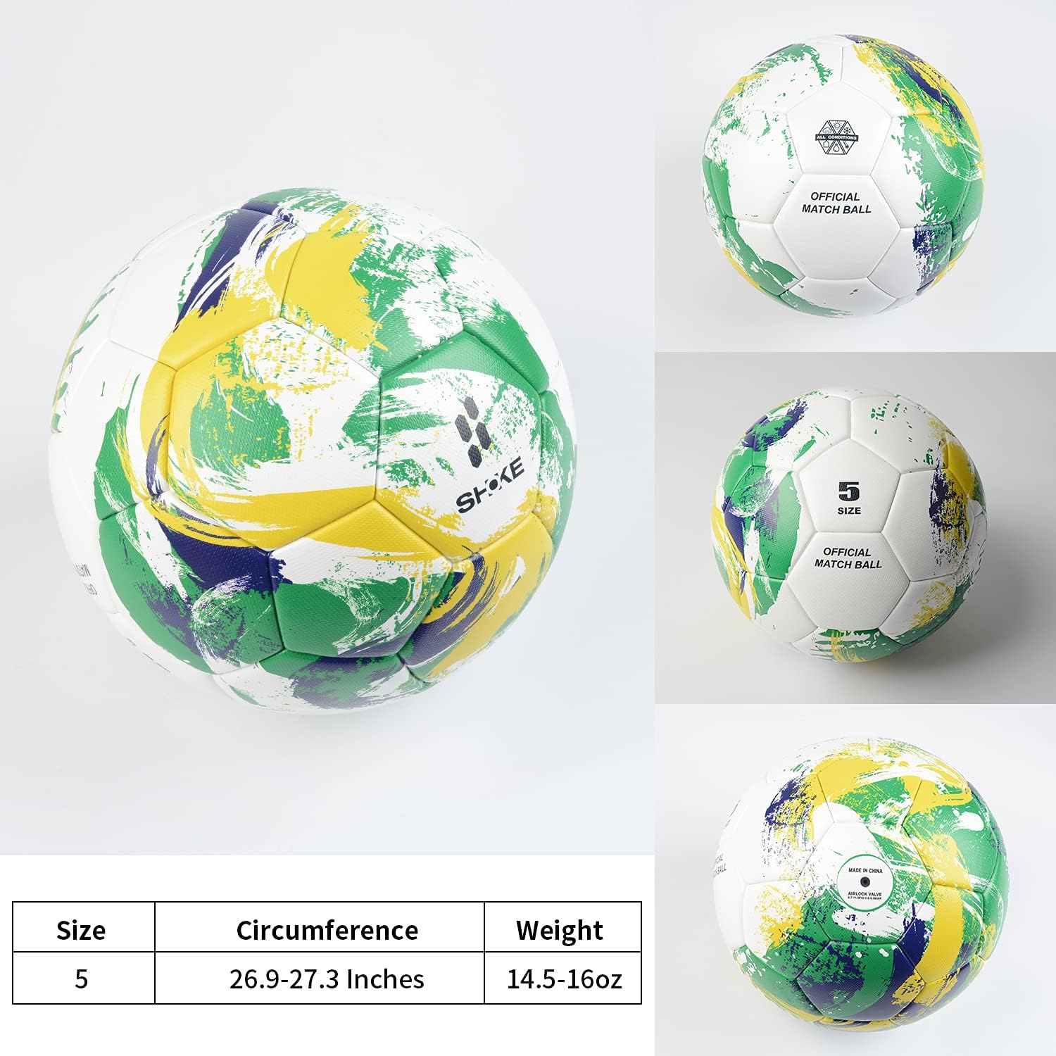 SHOKE Soccer Ball Size 5 Official Size Soccer Ball Thermal Bonded Training Slip Resistant Hold Air Outdoor/Indoor Match or Game Soccer Balls for Kids and Adults - Rebound Height 51.18-53.14 inch