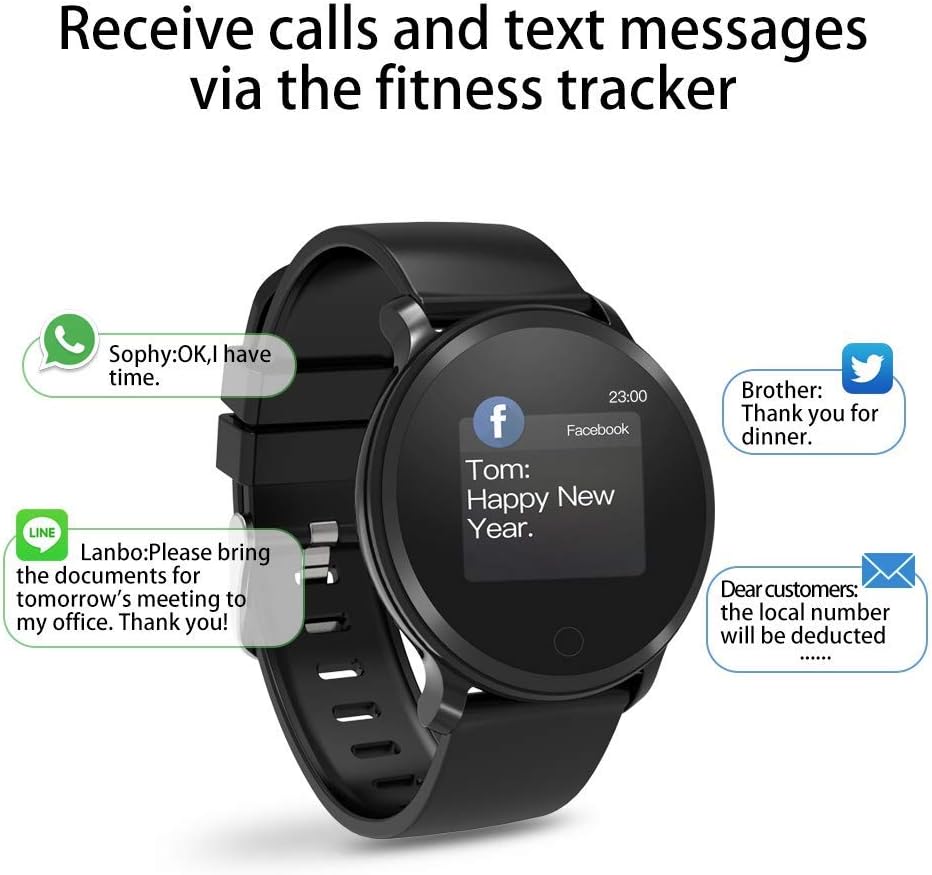 🌈【Recordatorio de llamadas y mensajes】Alerta de llamada telefónica, SMS/SNS, el Fitness Watch vibrará cuando recibas el mensaje para que no te pierdas ninguna información importante. Rechaza directamente las llamadas en el reloj, sin necesidad de sacar el teléfono del bolsillo. Después de vincular el teléfono móvil, la fecha y la hora se sincronizarán directamente.