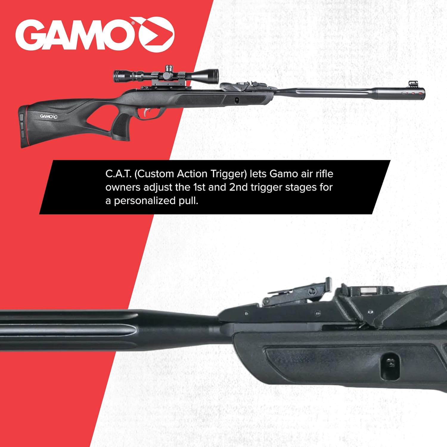 WHISPER FUSION SUPPRESSION: Gamo’s quietest noise reduction tech is built in here. The dual sound moderator works by trapping noise in two chambers, so your shots stay quiet.