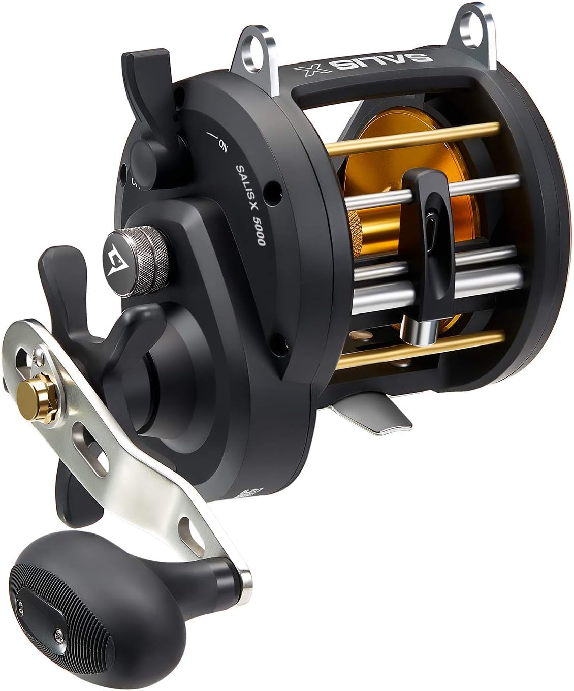 Loaded with Features: The Salis X is packed with features that you won't find on other reels in its class. It has a strong stainless steel crank handle, a super comfortable power knob, a stable three-bushing supported line winding, and an instant engage bait clicker