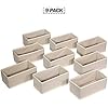 1, Classify Underwear, Bras, Socks, Ties, Scarves, Shirt, Baby T-shirt, Underpants, Undergarment, accessories etc. Easy to find which one you want to wear and never need to ransack all of your clothes. 2, These storage containers drawers Includes 9 medium rectangular organizer bins that can hold a variety of personal items. These stackable baskets dividers fit for men women male baby children kids girls boys. 3, The Collapsible cloths Storage Boxes Dresser Drawer organization provides lightweight solution and easy carrying to many personal storage needs. These soft adjustable compartments can be used for closet, bedroom, shelf, bathroom, wardrobe, chest of drawers, under bed storage, desk, bookshelf, nursery, office. 4, Made from non-woven fabric and Cardboard. Dresser drawer organizer measurements are: 11" X 5.5" X 4.7". Color: Beige. Set of 9. 5, SPACE SAVING YOUR CABINET: Can be folded flat to save space when not in use. Multi-Purpose, suitable for baby clothes, underwear, bras, socks, makeup, belt, lingerie, panty, clothing, diapers, toys, crafts.