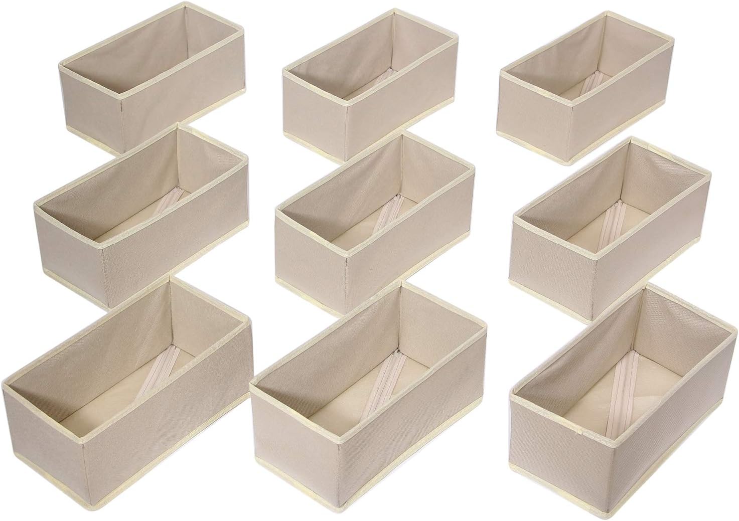 DIOMMELL 9 Pack Foldable Cloth Storage Box Closet Dresser Drawer Organizer Fabric Baskets Bins Containers Divider for Clothes Underwear Bras Socks Lingerie Clothing,Beige 090