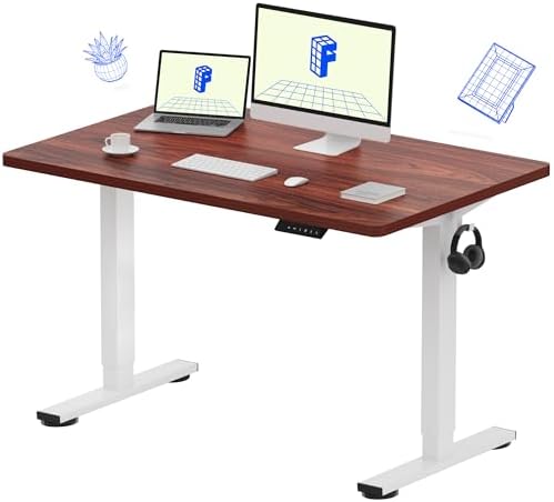 FLEXISPOT EN1 One-Piece Standing Desk with 1-Inch Thick Seamless Desktop, 48"x30" Electric Height Adjustable Desk for Home Office, Multi-Monitor Setups & Easy Assembly, Mahogany