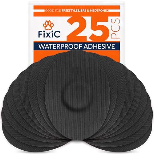 FixiC Freestyle Adhesive Patches 25 PCS – Good for Libre 1, 2, 3 & Plus – G7 & Stelo – Guardian – Waterproof Adhesive Patches – Libre Adhesive Covers – Pre-Cut – Best Fixation for your Sensor! (Black)