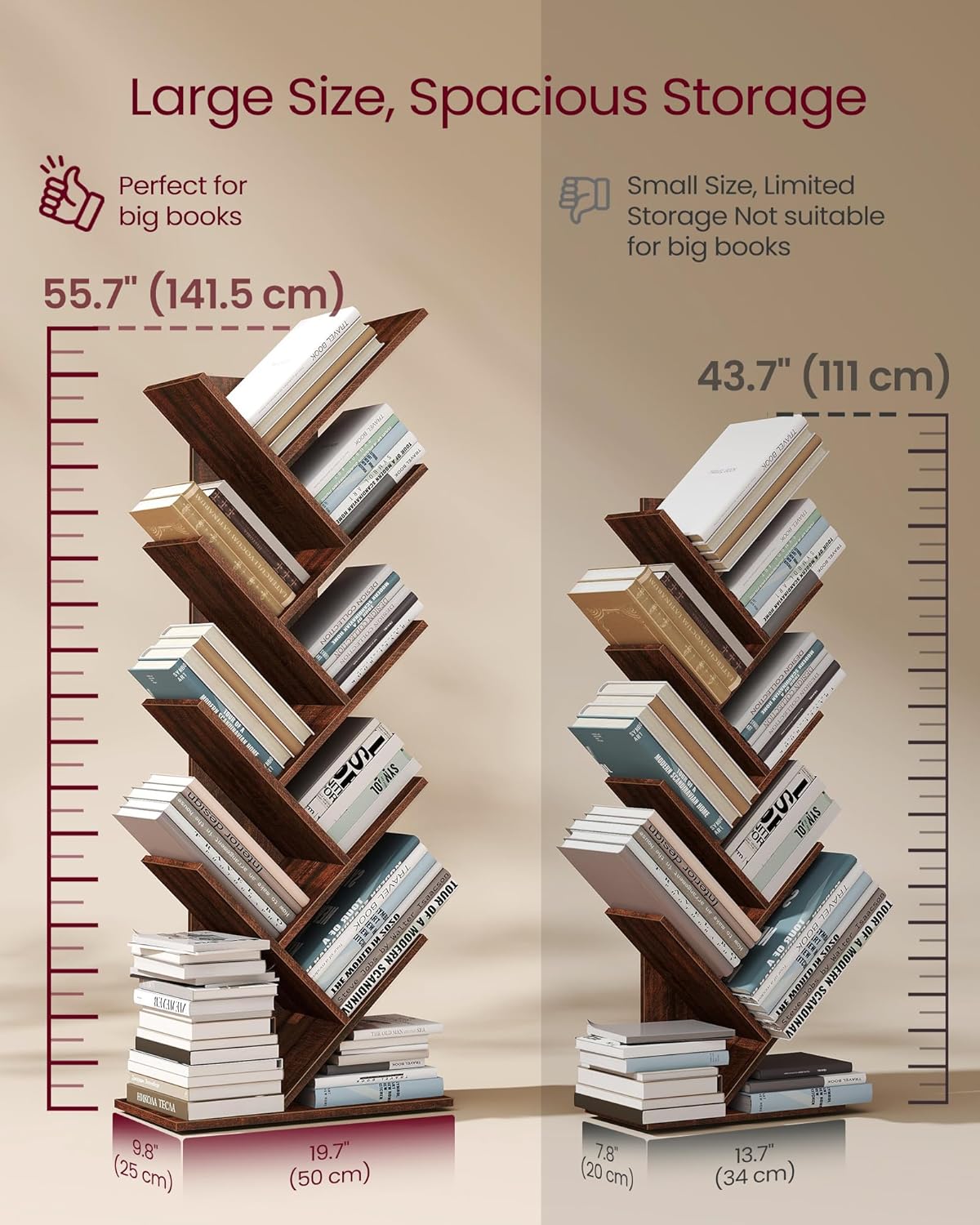 【SPACIOUS YET SPACE-SAVING】Books, CDs, video games, magazines...this 9.8"D x 19.7"W x 55.7"H book tree holds all of them while taking up a little floor space. Perfect for corners and small areas, it maximizes storage efficiency