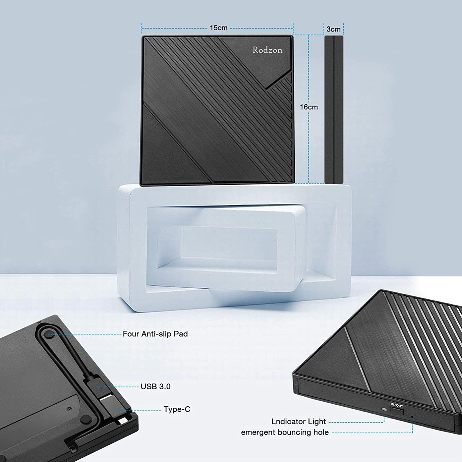Unidad de CD externa Rodzon tipo C USB 3.0, unidad portátil de CD, DVD +/-RW, compacta, regrabadora de DVD/CD ROM, grabadora, compatible con ordenadores portátiles de escritorio Windows Linux OS Apple Mac