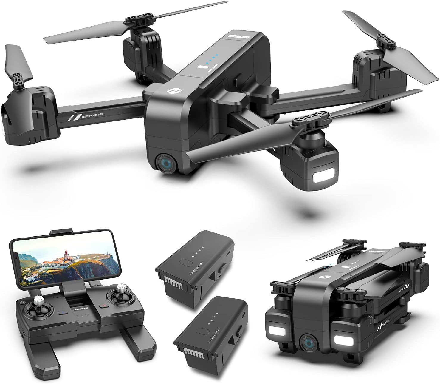 Drone Holy Stone HS270 GPS 2.7K con cámara FHD FPV, vídeo en directo para adultos, cuadricóptero portátil para selfies con 2 baterías para principiantes con regreso automático a casa, ruta de vuelo personalizada, sígueme, vuelo estacionario automático