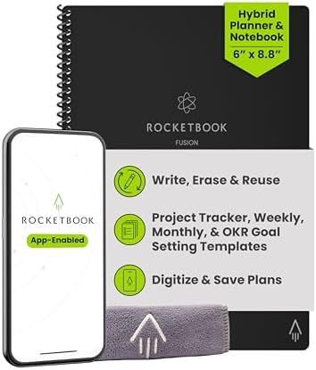 ¿Buscas la mezcla perfecta de un planificador tradicional y tecnología moderna? El Rocketbook Fusion es un híbrido versátil y reutilizable de planificador y cuaderno diseñado para todos—desde estudiantes universitarios hasta profesionales, ejecutivos de negocios y maestros. El Rocketbook Fusion satisface todas tus necesidades de planificación para mejorar la productividad y la organización, ya sea que seas estudiante, profesional o padre ocupado. Ya sea que estés gestionando tareas, rastreando metas o planificando comidas, el Rocketbook Fusion es tu solución ideal como Planificador Estudiantil y Planificador de Productividad para Planificador de Vida y Planificador de TDAH. Con 7 tipos de páginas versátiles—Calendario Mensual, Planificador Semanal, Lista de Tareas, Rastreador de Metas OKR, Lista de Ideas, Páginas de Punto de Red y Páginas Lineadas—el Rocketbook Fusion se adapta a tu estilo de vida. Usa el Calendario Mensual para la planificación a gran escala, el Planificador Semanal para organizar tu semana, la Lista de Tareas para gestionar las tareas diarias, el Rastreador de Metas OKR para establecer y alcanzar metas, la Lista de Ideas para capturar ideas, las Páginas de Punto de Red para planificación o dibujo flexible, y las Páginas Lineadas para toma de notas estructurada, diario y mindfulness. Con la app Rocketbook, puedes fácilmente digitalizar y subir tus notas a servicios de nube como Google Drive, Dropbox, Evernote, OneNote e iCloud, permitiéndote acceder y organizar tus notas desde cualquier lugar. El Rocketbook Fusion está construido para durar, con papel reutilizable de alta calidad, encuadernación espiral duradera y cubierta impermeable. Su diseño delgado cabe fácilmente en cualquier bolso, haciéndolo perfecto y eficiente para uso en movimiento. Además, su naturaleza eco-friendly reduce la dependencia del papel tradicional, apoyando un estilo de vida sostenible. Ideal para preparación para el regreso a clases, cumpleaños o ocasiones especiales, el Rocketbook Fusion es un regalo reflexivo y práctico que optimiza la gestión del tiempo. Perfecto para estudiantes, madres trabajadoras, planificadores de negocios y planificadores neurodivergentes, ayuda a optimizar tareas, mejorar la eficiencia y alcanzar metas.