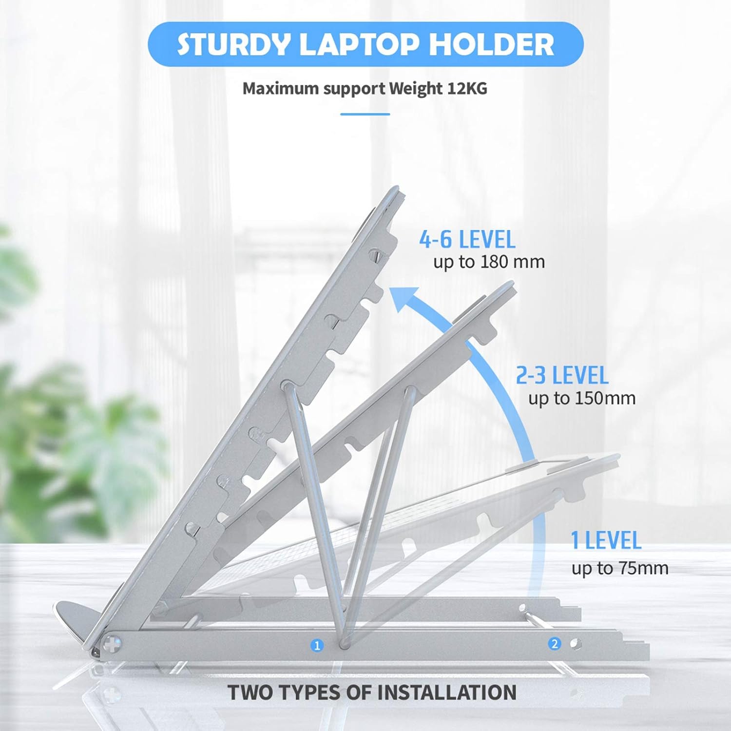 💻【Foldable and Portable】- To accommodate and fix different thickness laptop, the adjustable studs where the laptop sits can be pulled up. It's very light, which is perfect for all types of travel. From leisure to business, it can be easily stored flat in suitcases, backpacks and even handbags.