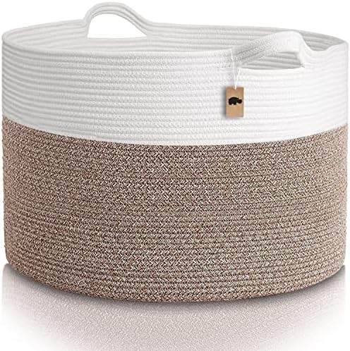 Little Hippo XXXL Cotton Rope Basket (22"x14") 100% Natural Cotton! Baby Gift, Large Blanket Storage for Living Room, Toy and Pillow Organizer (White & Brown)