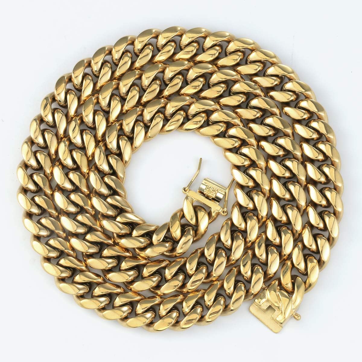 Mens Heavy Miami Cuban Link Chain Choker 14k Gold Plated Hip Hop Thick Stainless Steel 8mm-16mm Necklace/Bracelet (10mm,20)