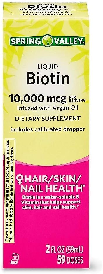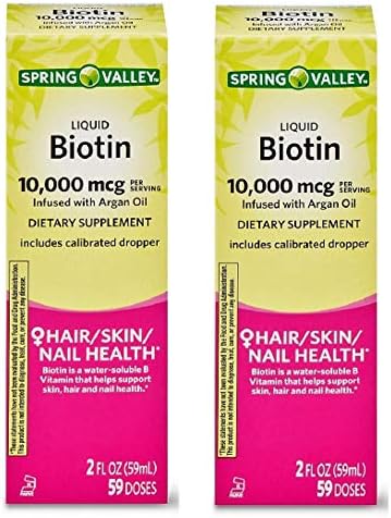 Spring Valley Liquid Biotin 10,000 mcg Argan Oil Hair, Skin, Nail Health, 2 fl oz (Pack of 2)