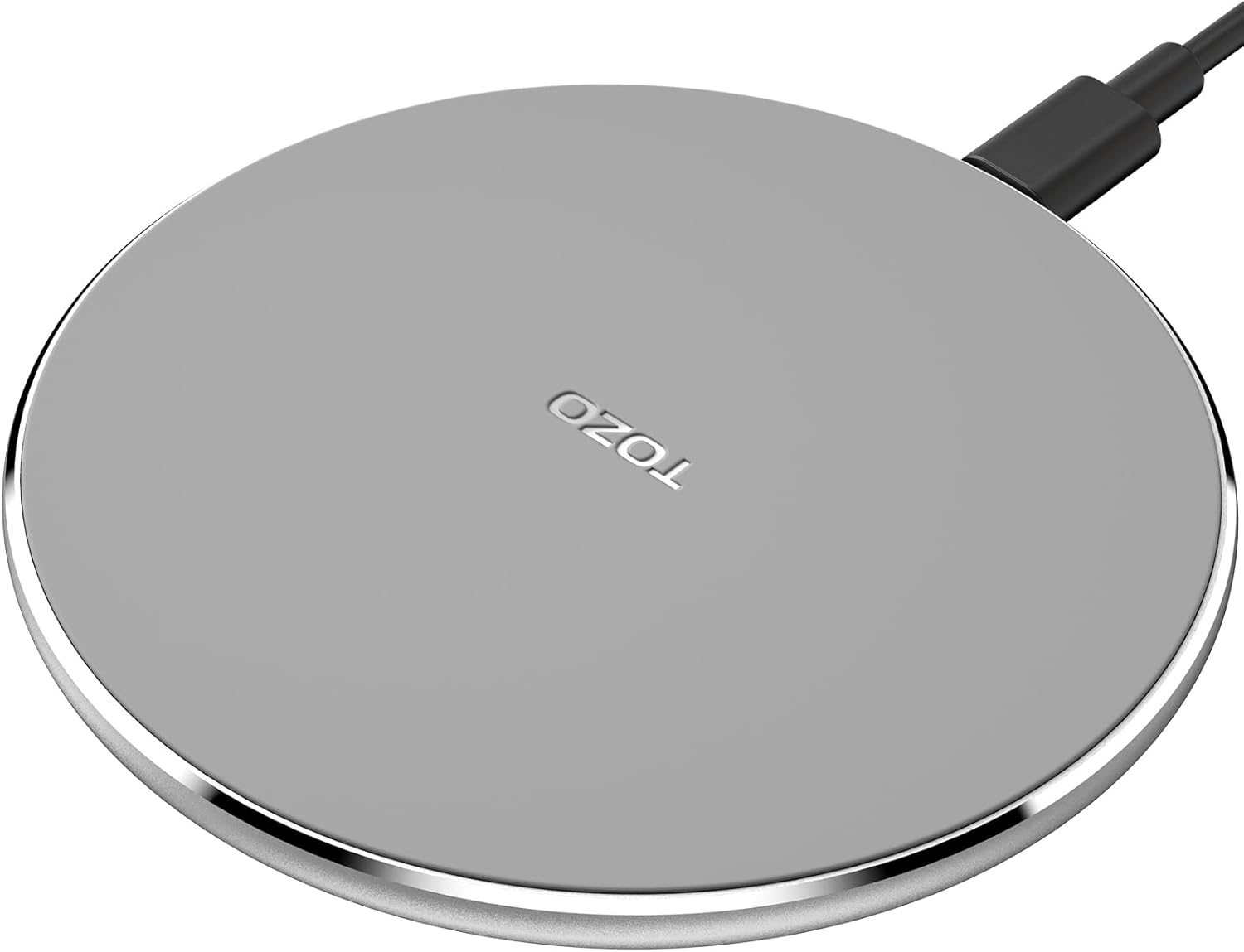 TOZO W1 Wireless Charger, 10W Qi-Certified Charging Pad with Aviation Aluminum Computer Numerical Control Technology Compatible with iPhone 16/16 Plus/16 Pro Max/15 14 13 12 and Samsung Galaxy Series