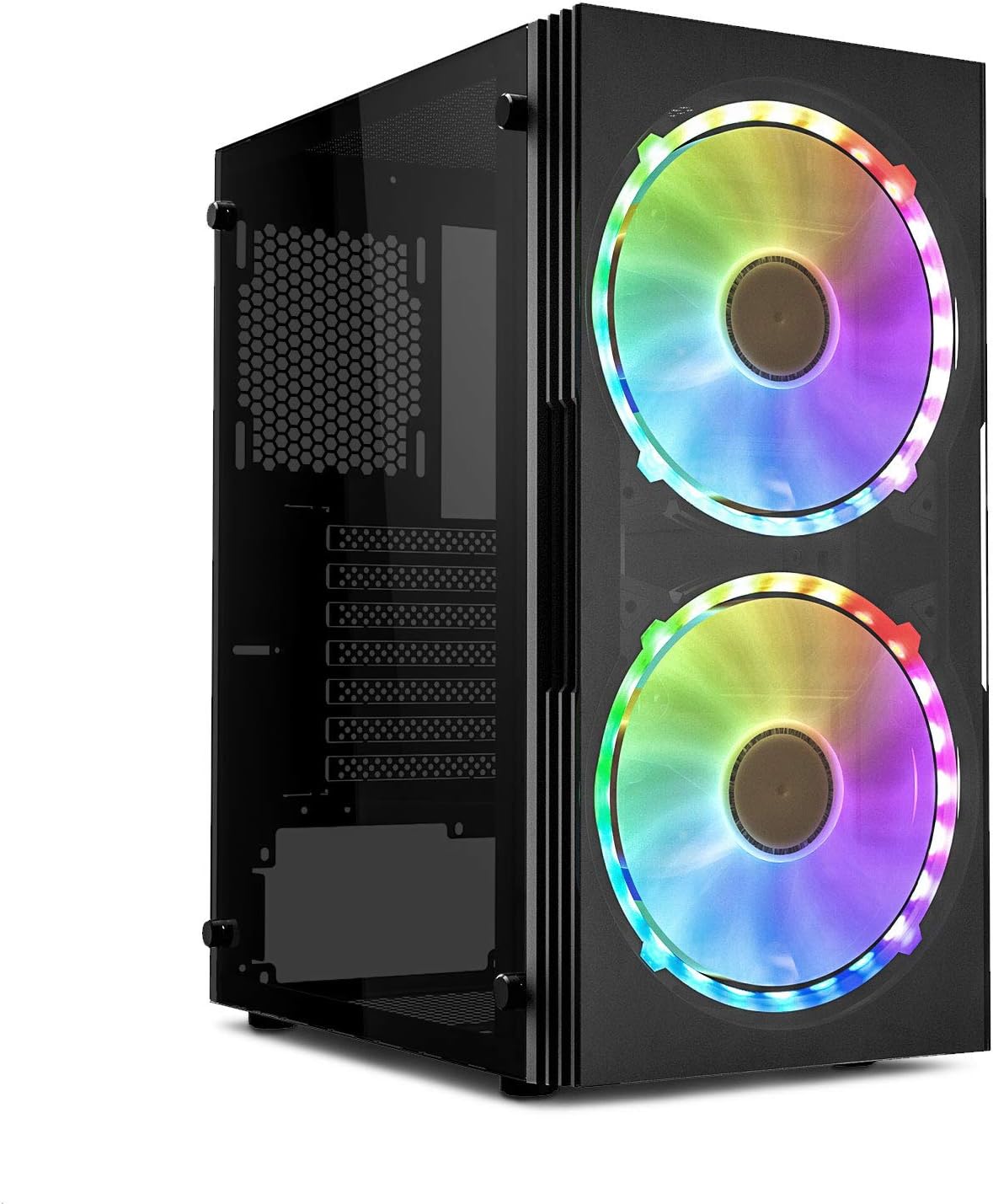 Tower Gaming Tempered Glass Computer Case with a Pair of 20 cm 200mm RGB case Fans