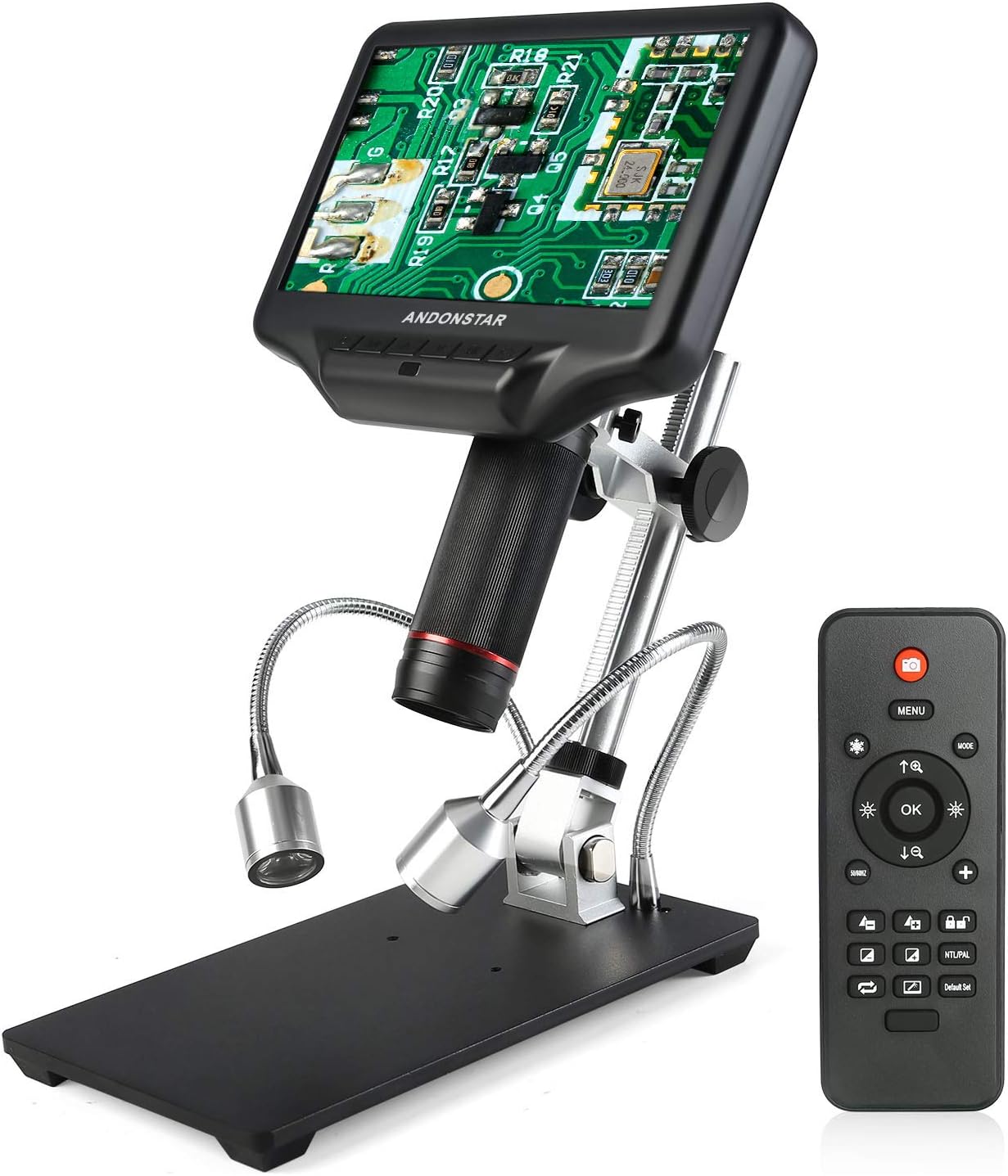 Andonstar AD407 3D HDMI Soldering Digital Microscope with 4MP UHD and 7 inch Adjustable LCD Screen USB Video Microscopes for Phone Repairing SMT SMD DIY