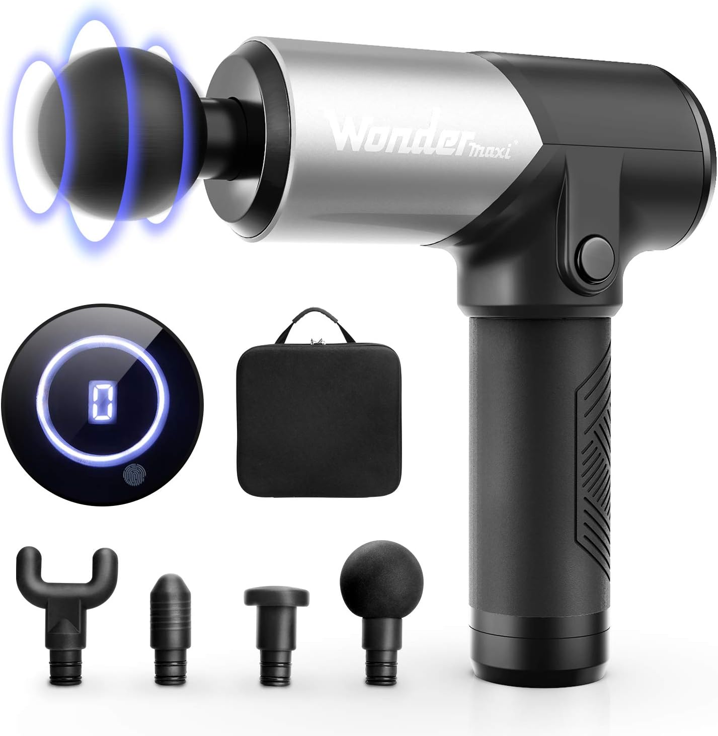 【6 Replacement Massage Heads】:Wonder Maxi massage gun offers 6 customized massager heads, provides a relaxing massage experience and reduces bone damage. The handheld designed and 4 tips attachments allow you to reach every muscle.