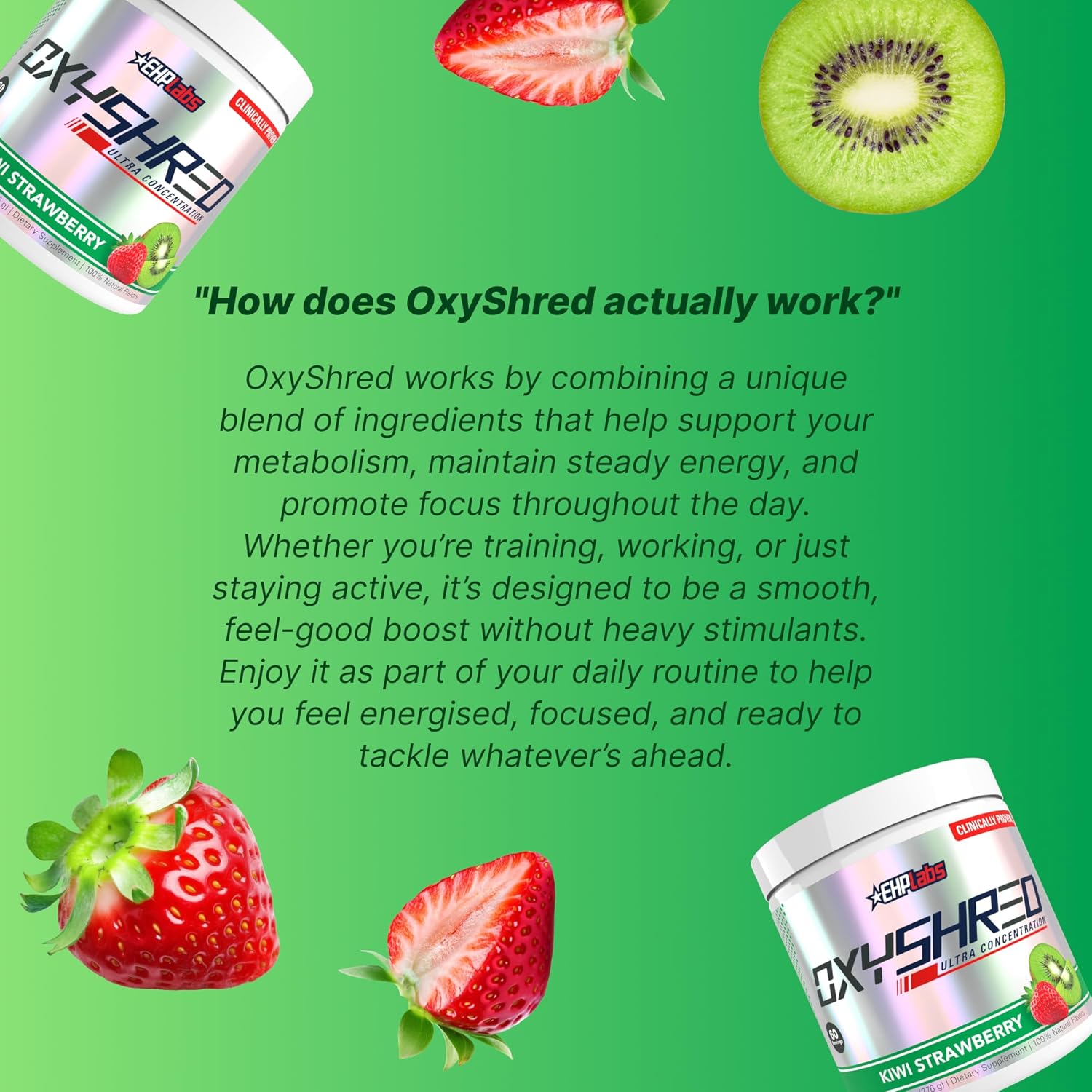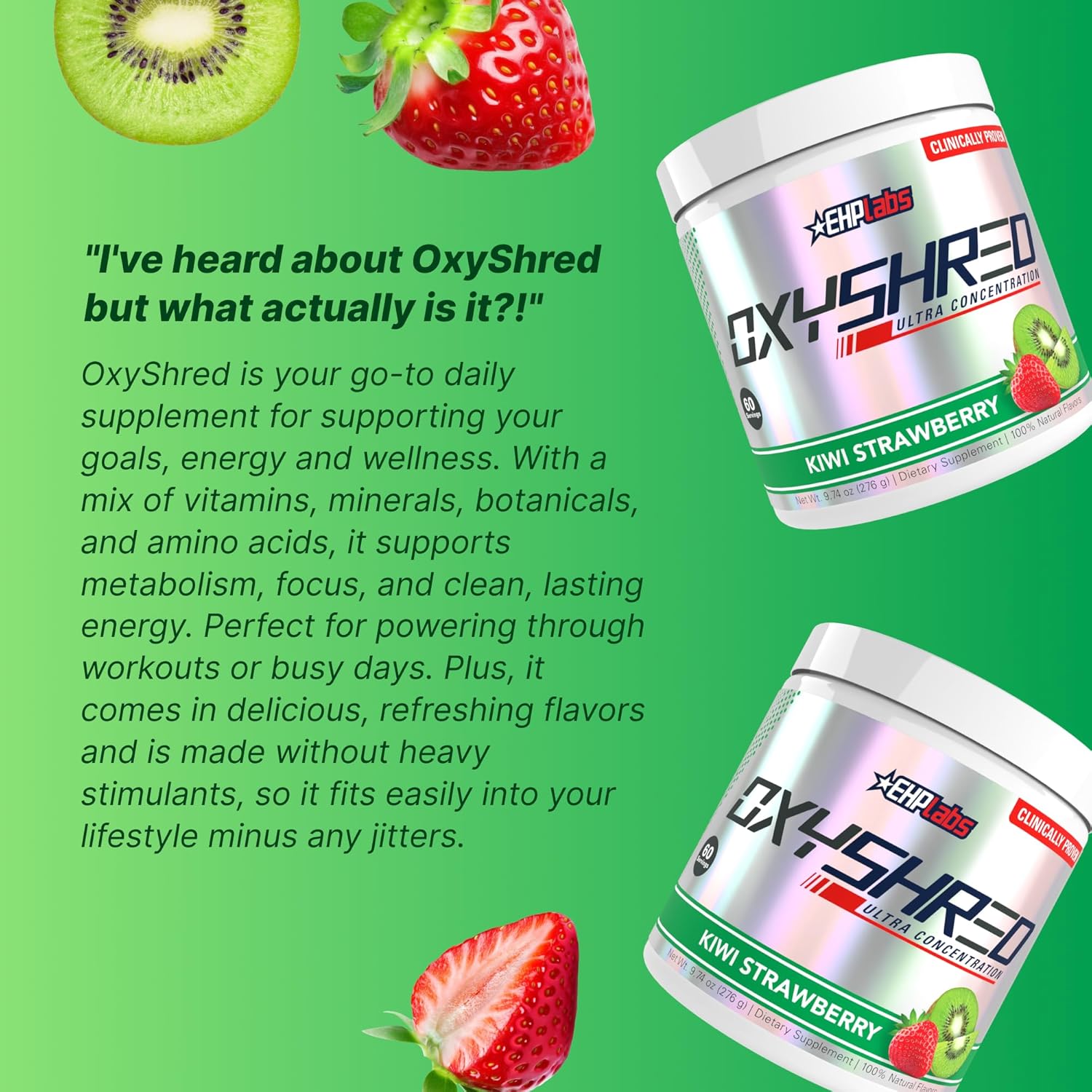 Shred Supplement - OxyShred uses a number of ingredients to help you shred (and keep it off). Each serving of our Pre-Workout for men & women provides effective doses of ingredients like high-potency green coffee bean extract, acetyl l-carnitine, and more. No nonsense or harsh stimulants that do more harm than good.