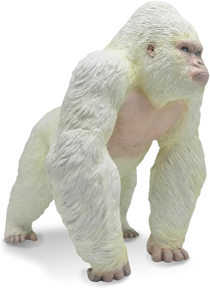 CALIDAD Y DURABILIDAD INIGUALABLES: Puedes sentir la excepcional artesanía y calidad del producto cuando sostienes nuestra figura de acción en la mano. Las partes del cuerpo de nuestra figura de acción son suaves y resistentes, por lo que tus hijos pueden torcer la mandíbula, los dientes y los dedos de los pies y jugar bruscamente sin preocupaciones. Hecha de material de PVC no tóxico, esta figura de acción de gorila albino es resistente a las caídas.