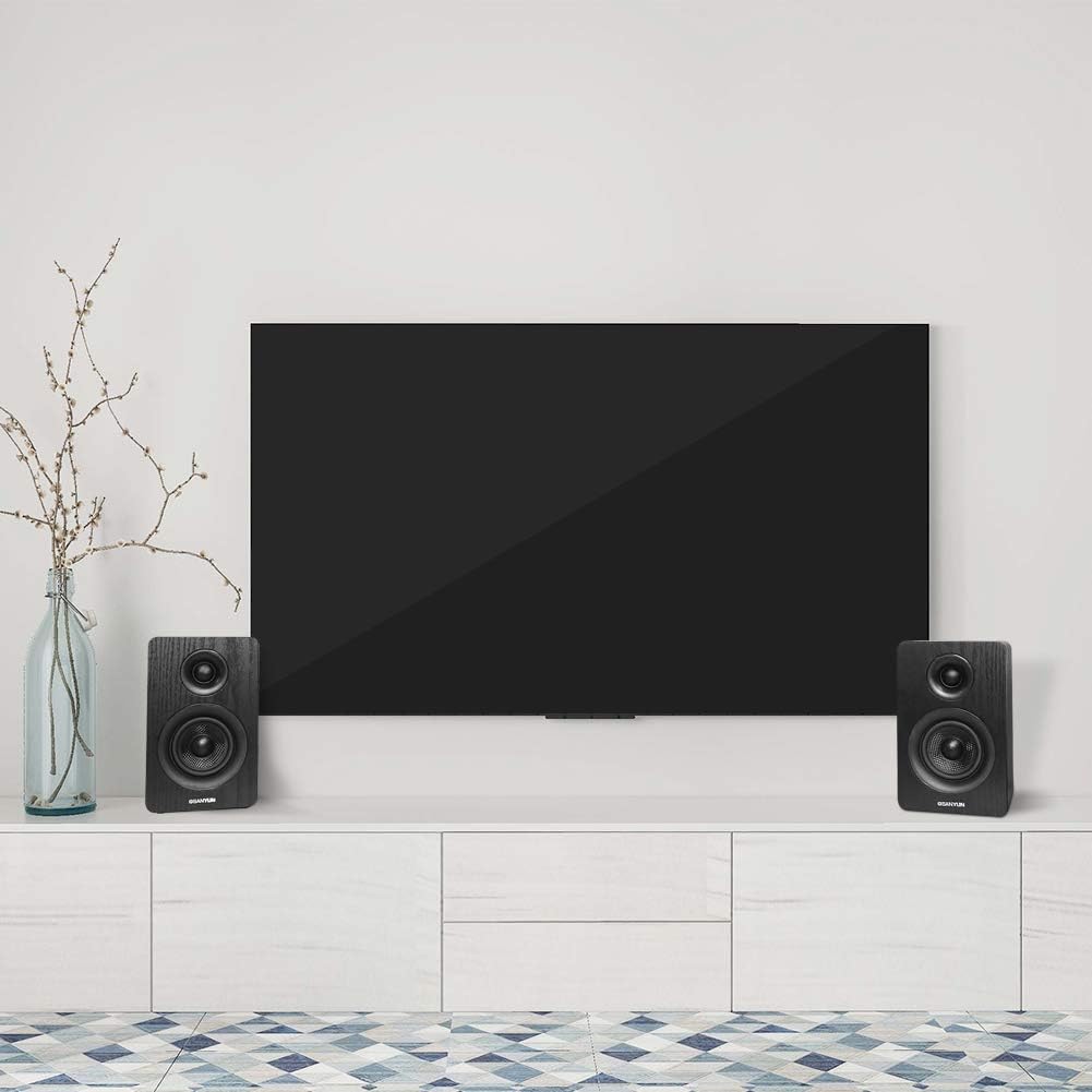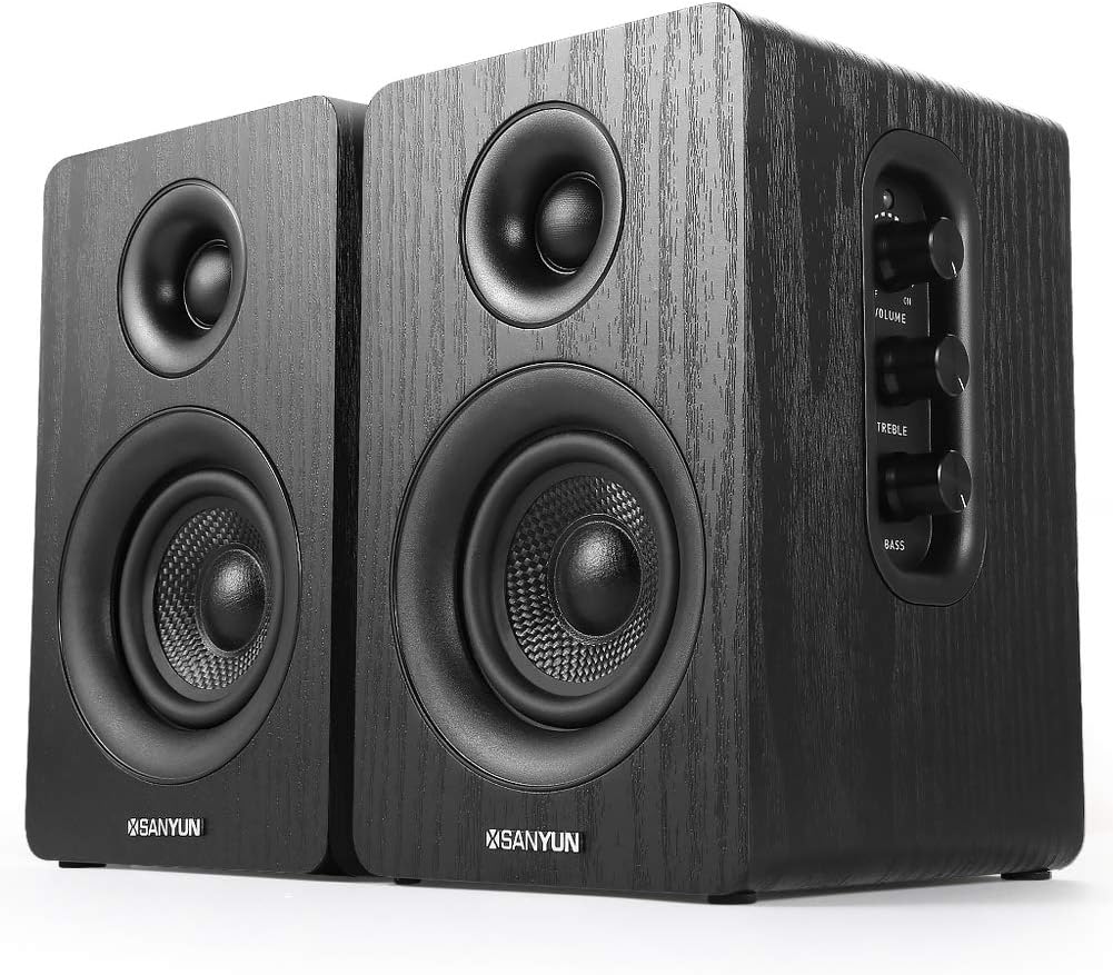 Sanyun SW208 3" Active Bookshelf Speakers - 25w x 2 Powered Computer PC Monitor Speakers - 3 Inch Carbon Fiber Speaker Unit - 3.5mm Audio Input - Wood Grain (Pair, Upgraded)