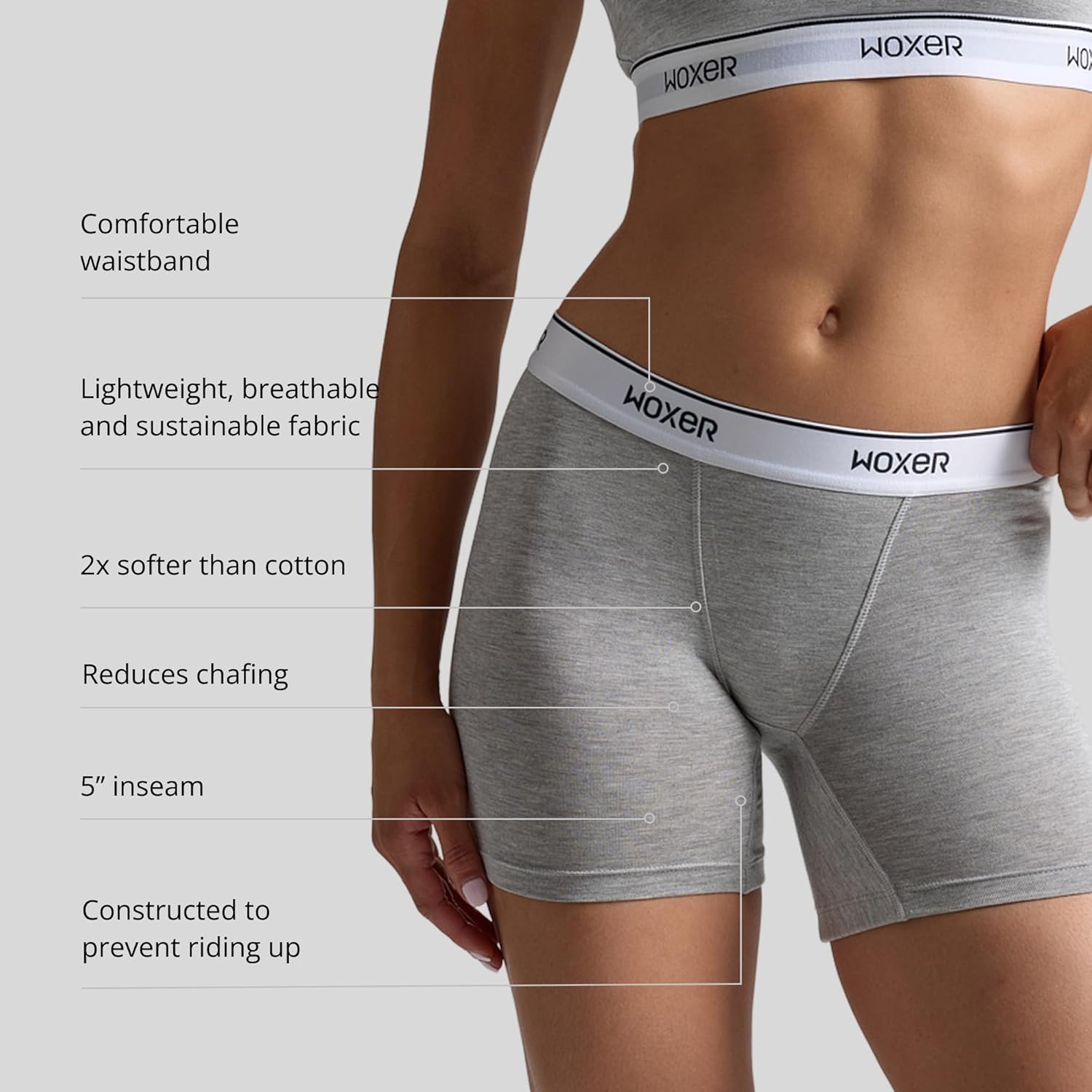 Woxer Boxer Shorts for Women - 5" Baller Boy Shorts Underwear, Soft Modal, Chafe Free - Breathable & Moisture-Wicking