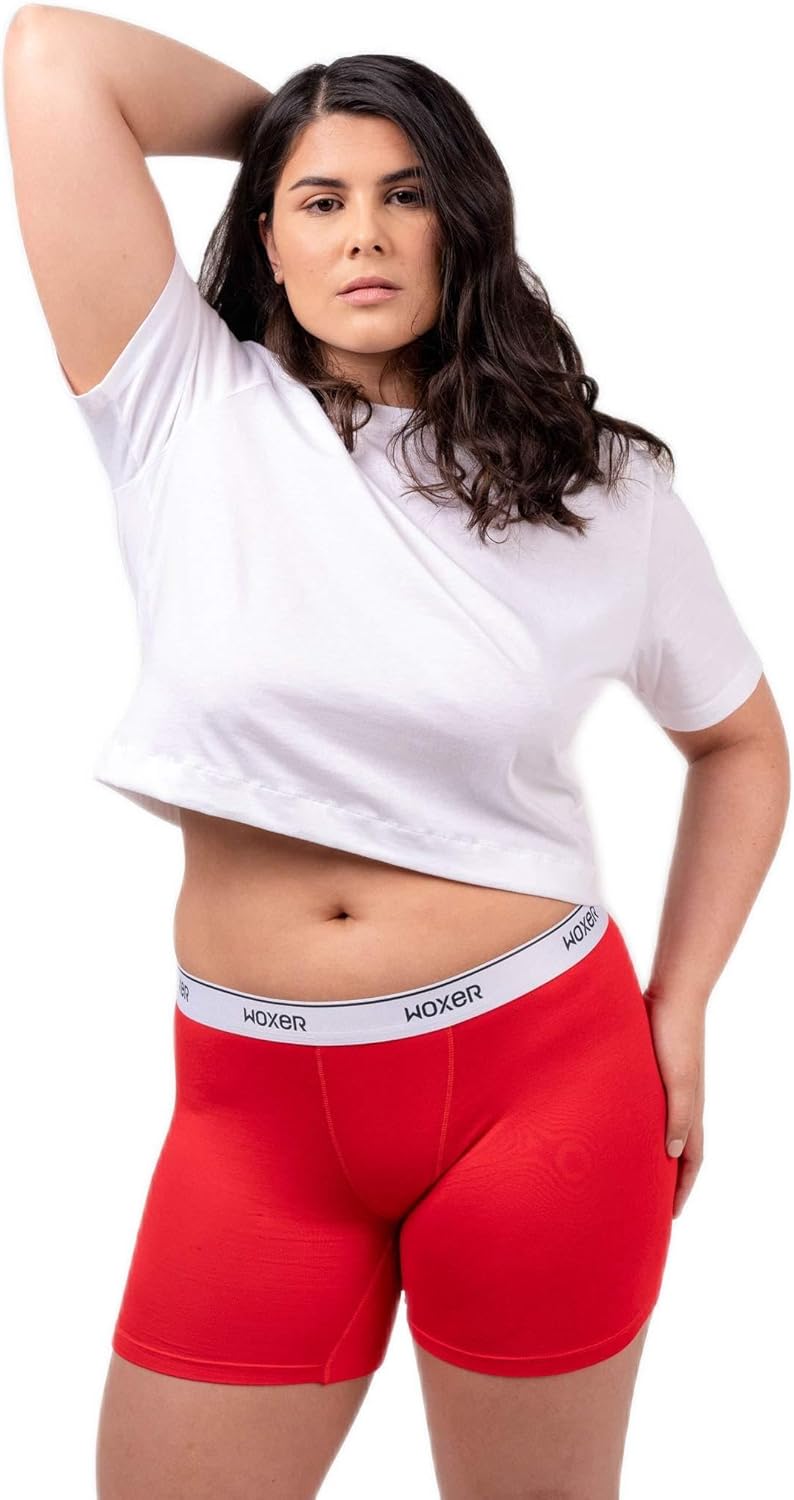 Woxer Boxer Briefs for Women Baller 5” Inseam- Underwear for Ladies (Red, 3XL)