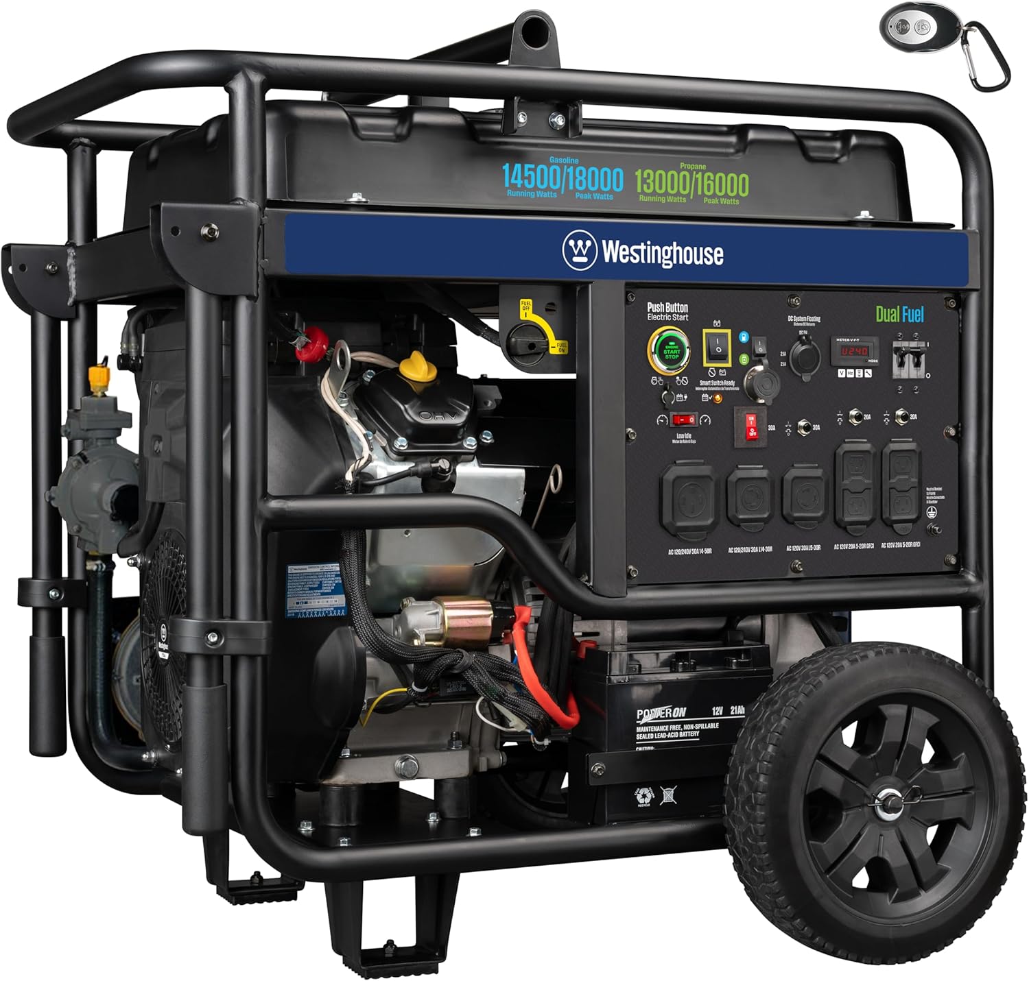 Westinghouse 18000 Peak Watt Dual Fuel Home Backup Portable Generator, Remote Electric Start, Transfer Switch Ready, Gas and Propane Powered