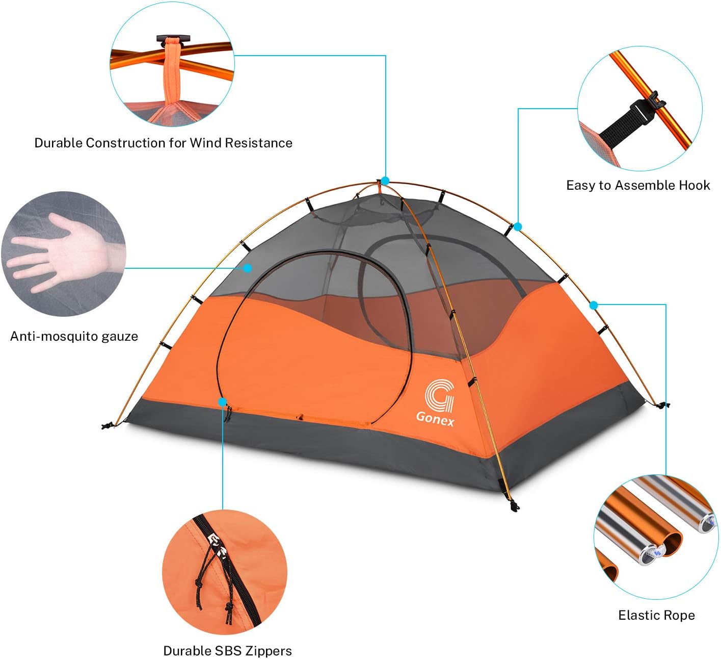 Gonex Lightweight 2 Person Camping Tent, Waterproof Backpacking Tent, Double Layer Dome Tent with Aluminum Poles, Easy Set-Up