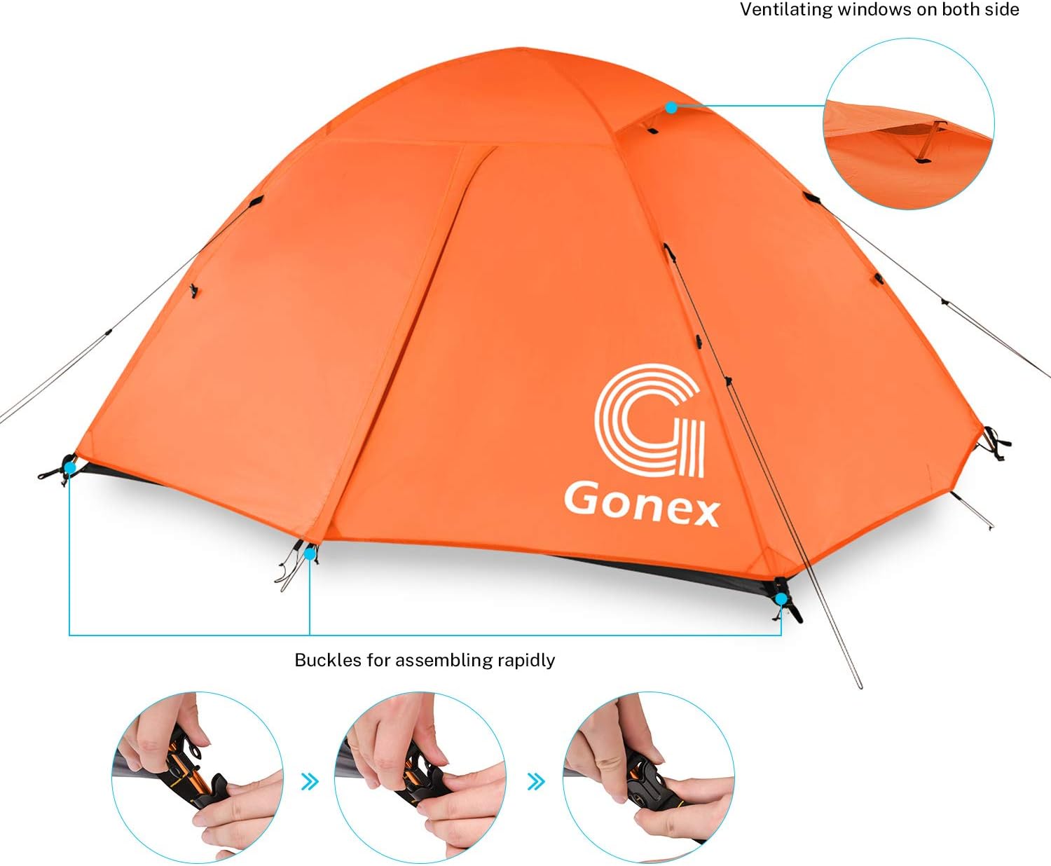 Gonex Lightweight 2 Person Camping Tent, Waterproof Backpacking Tent, Double Layer Dome Tent with Aluminum Poles, Easy Set-Up