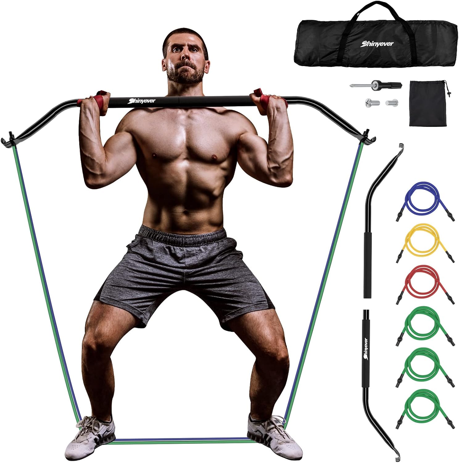 Bow Portable Home Gym with 6 Resistance Bands Fitness Equipment, Abdominal, Bicep Curls, Arms, Leg Muscle Training Kit, Travel, Outdoor, Full Body Workouts for Yoga Pilates Sliming (Black)