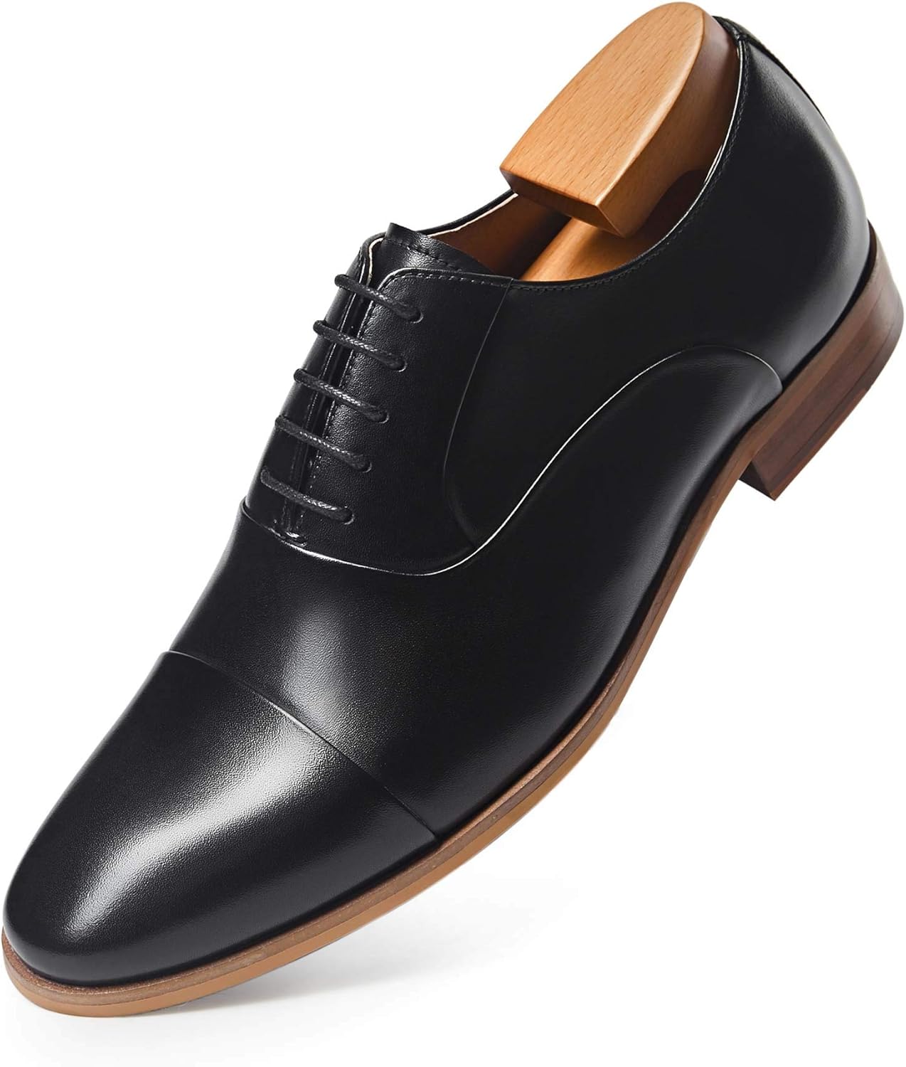 Zapatos de vestir para hombre FRASOICUS, zapatos de piel Oxford formales con cordones en la punta de las alas para hombre