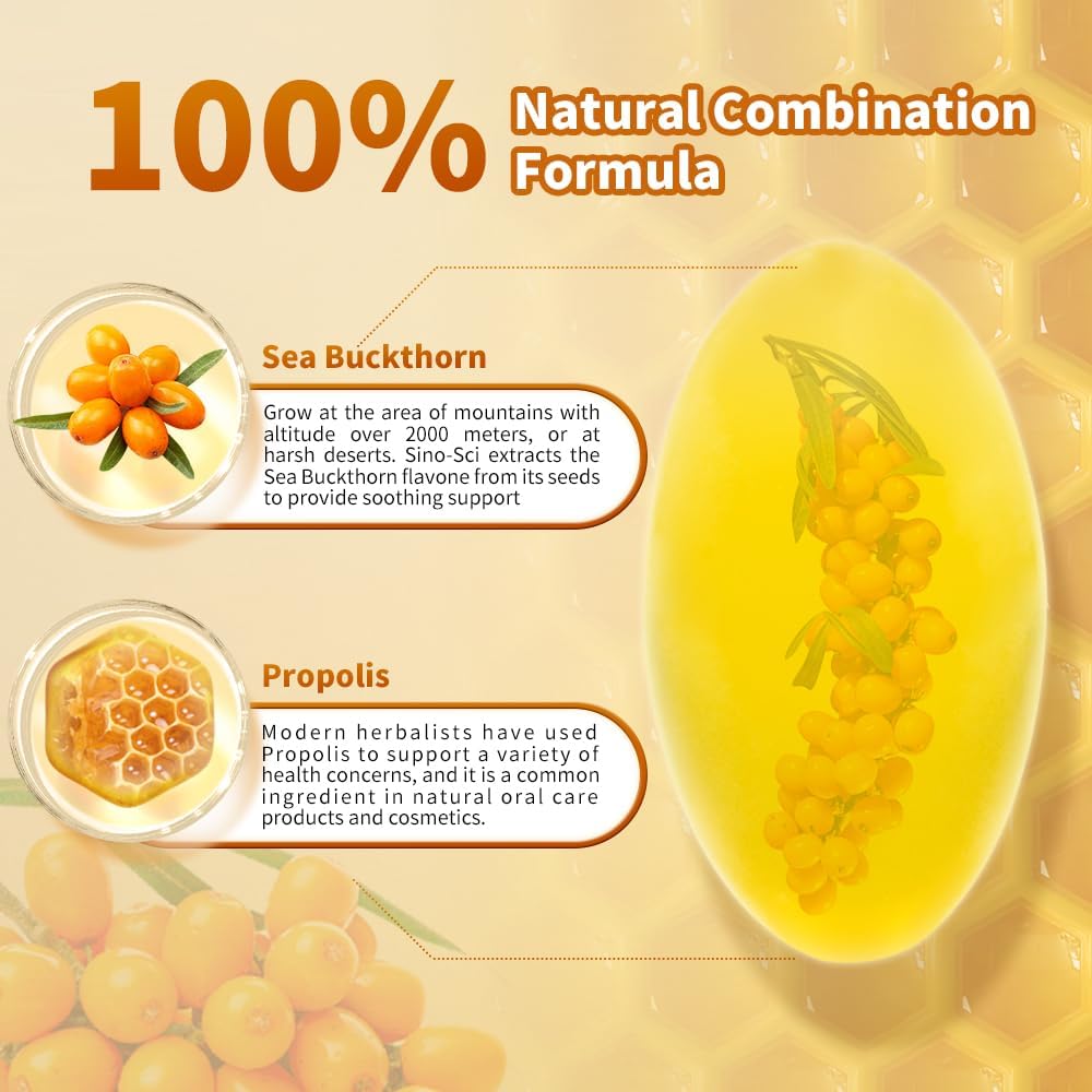 ✅100% Organic. Major ingredients include Sea Buckthorn seed oil and Propolis extract.