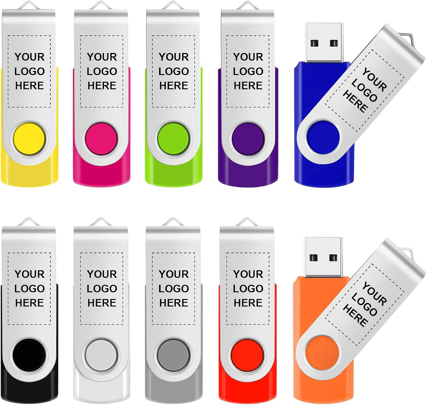 Personalized USB Flash Drive 50 Pack, Custom 4GB Thumb Drives Photo Stick Jump Drive Featuring Double-Sided Printing, Swivel USB Memory Stick Pendrive Zip Drives for Home/Office/School