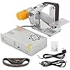 Mini lijadora de banda Huanyu, máquina eléctrica de 360 W, correa de pulido, afilador de microcuchillos de 1.2 x 21 pulgadas, máquina lijadora de banco DIY con 9 correas para metal, madera y aluminio, velocidad ajustable