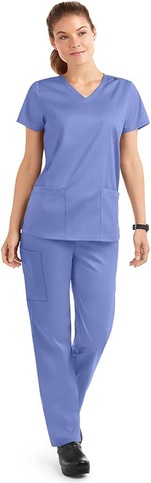 Strictly Scrubs Stretch Women’s Four Way Stretch Scrub Set – Includes V-Neck Top and Pant (XX-Large, Ceil)